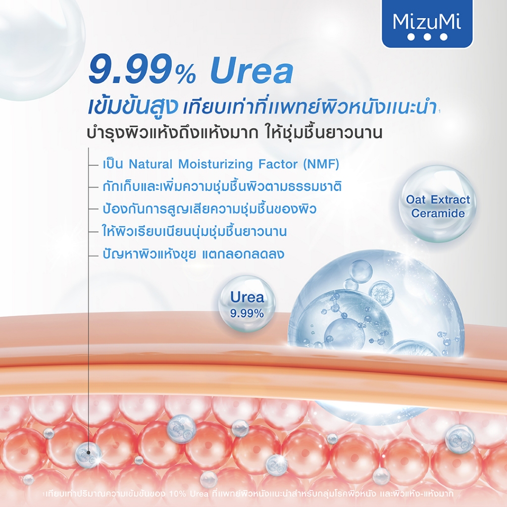 MizuMi Urea 9 Soothing Dry Rescue Lotion 250 ml ✔️ฟื้นบำรุงผิวแห้งถึงแห้งมาก ให้ชุ่มชื้นยาวนาน ✔️ฟื้นบำรุงผิวให้รู้สึกเนียนนุ่ม พร้อมเสริมปราการผิวให้แข็งแรง 🩵9.99% Urea เข้มข้นสูง เป็น Natural Moisturizing Factor (NMF) -กักเก็บและเพิ่มความชุ่มชื้นผิวตามธรรมชาติ -ลดความ