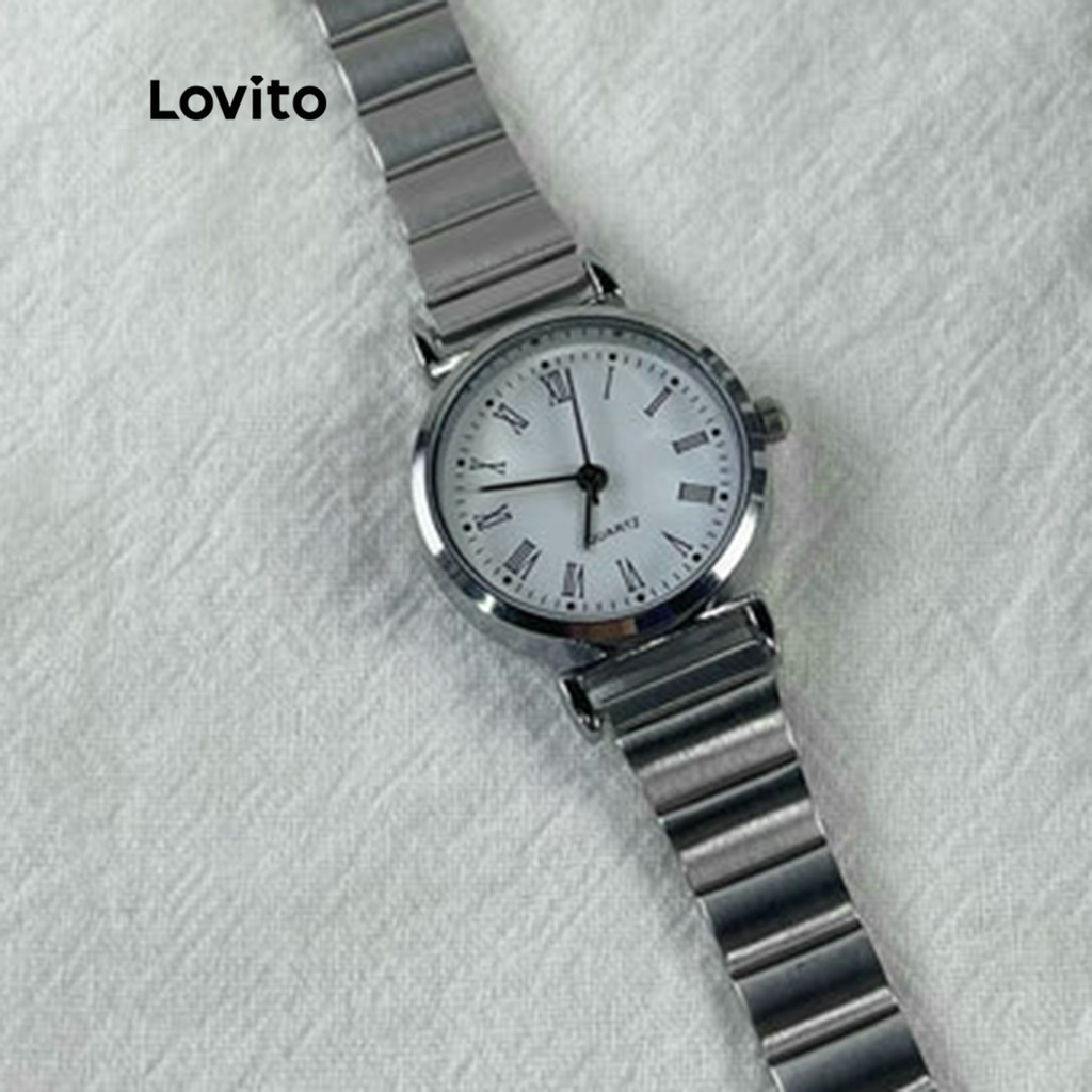 Lovito นาฬิกาควอทซ์ลำลอง ดิจิตอล พื้นผิวโลหะ สีพื้น สำหรับผู้หญิง LNA13089 (สีเงิน)