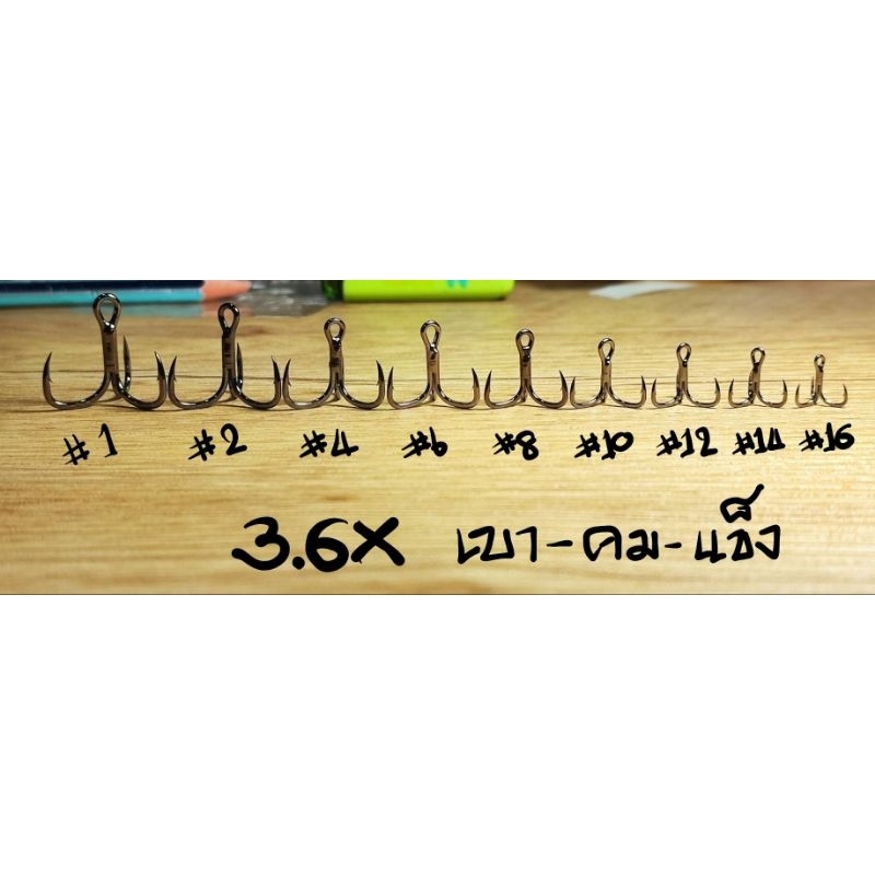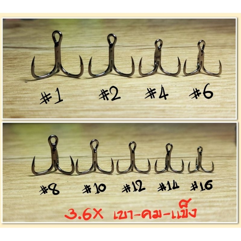 เบ็ดสามทาง แข็ง 3.6X ทรงญี่ปุ่น งานดีมาก เบา - คม - แข็ง ก้านสั้น เบ็ดกว้าง สีดำเงา สวยมาก ซองละ 10 ตัว มีเบอร์ 1-2-4-6-8-10-12-14-16 ขนาดตัวเบ็ด ตามตารางครับ