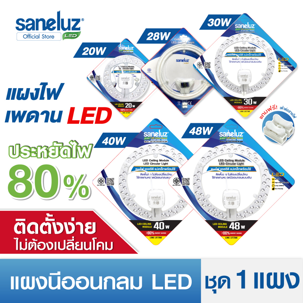 Saneluz ไฟเพดาน LED 20W 28W 30W 40W 48W แผงนีออนกลม ใช้งานง่าย มีแม่เหล็กยึด ใช้แทนโคมเดิมได้ทันที ใช้งานไฟ AC220V led