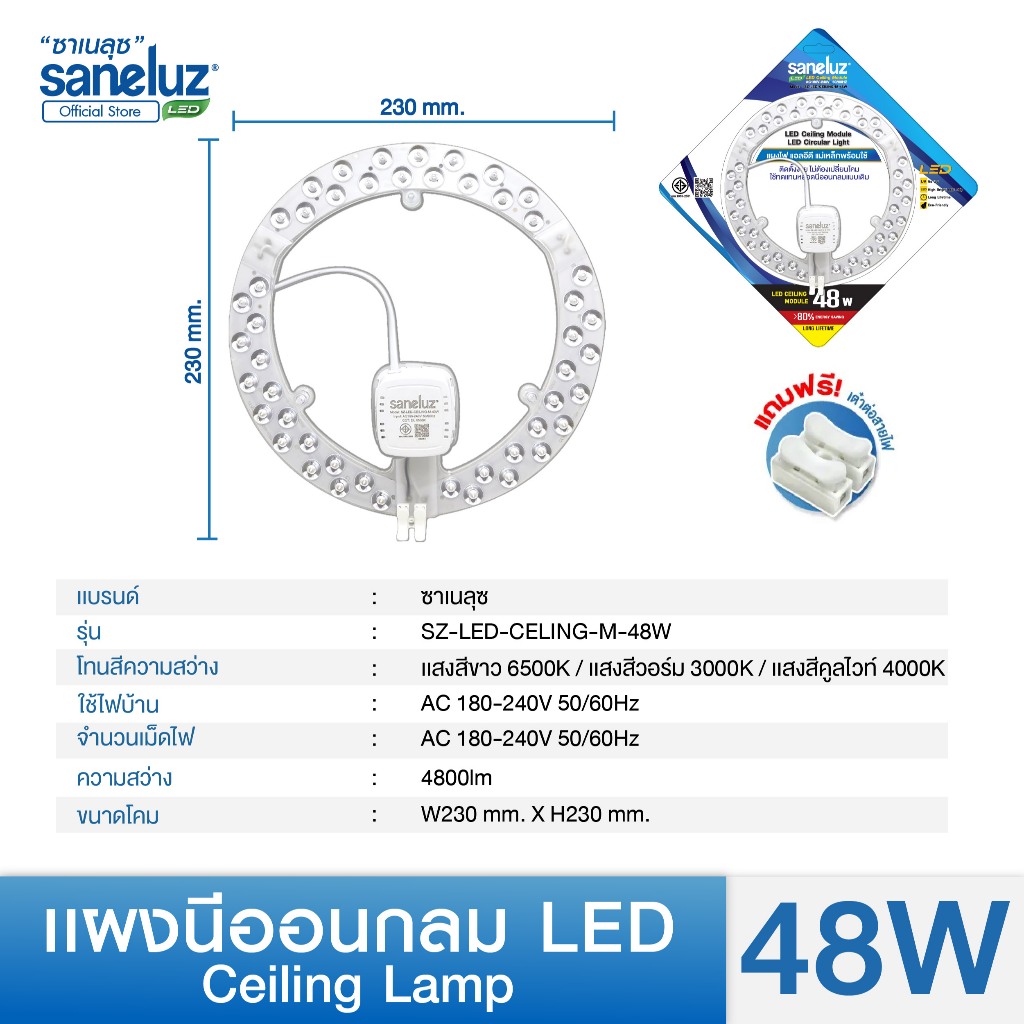 Saneluz แผงไฟ led เพดาน แผงนีออนกลม 20W 28W 30W 40W 48W (แสงสีขาว 6500K แสงสีวอร์ม 3000K Ceiling Lamp) LED แอลอีดี ใช้งานง่าย เปลี่ยนแทนโคมเดิมได้ทันที ใช้งานไฟ AC 220V led รายละเอียดสินค้า แผงนีออนกลม ขนาด 20W แสงสีขาว แผงนีออนกลม ขนาด 28W แสงสีวอร์ม แผงนีออนกลม ขนาด 30W แสงสีขาว