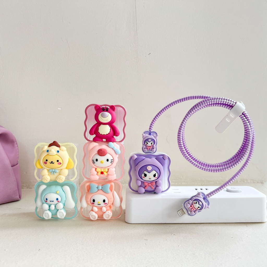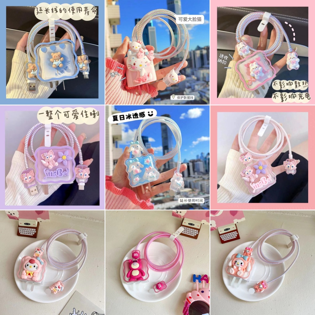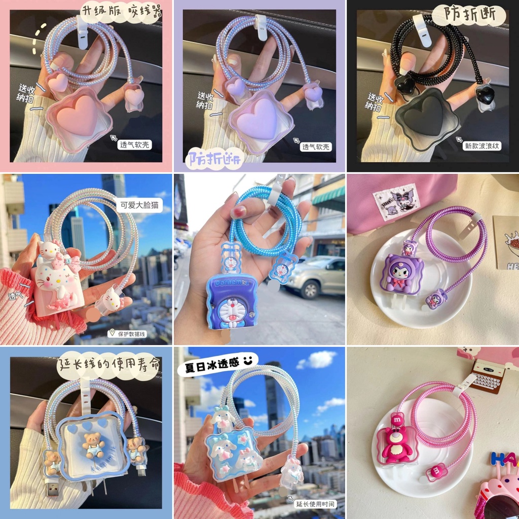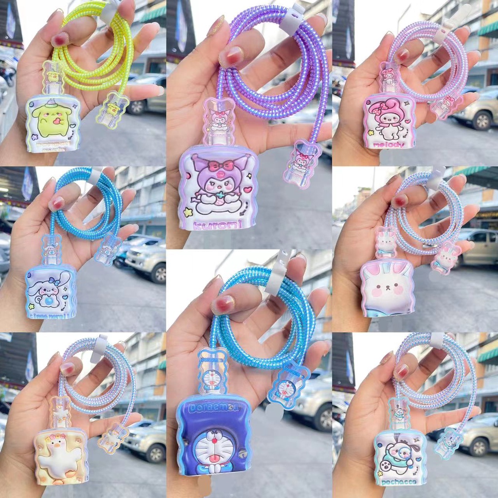 🚚พร้อมส่งจากไทย🚚 20W 🔥พร้อมส่ง🔥ชุดแต่งสายชาร์จลายการ์ตูน เคสหัวชาร์จ ชุดถนอมสายชาร์จการ์ตูนน่ารักๆ