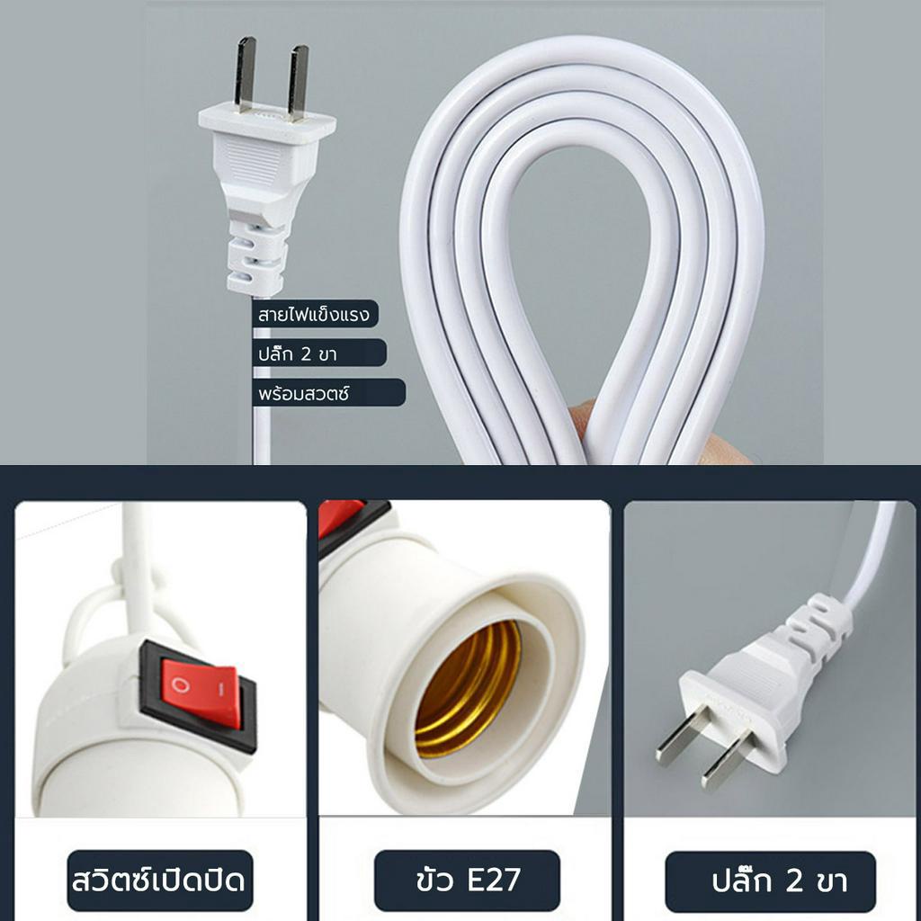 [หลอดไฟ+ขั้ว] มอก.หลอดไฟ LED Bulb ใช้ไฟฟ้า220V หลอดไฟขั้วเกลียว ขั้ว E27 10W15W20W25W35W40W45W65W รายละเอียดสินค้า **ขั้วหลอดไฟ E27 ** มีสวิตซ์เปิด-ปิด พร้อมสายไฟมีปลั๊กเสียบ ยาวประมาณ 5 เมตร เป็นสายสีขาว - ขั้วหลอดแบบเกลียว E27 กระแสไฟ 220V สามารถเปลี่ยนแทนหลอดเดิมได้ทันที - โทนแสง : Coo
