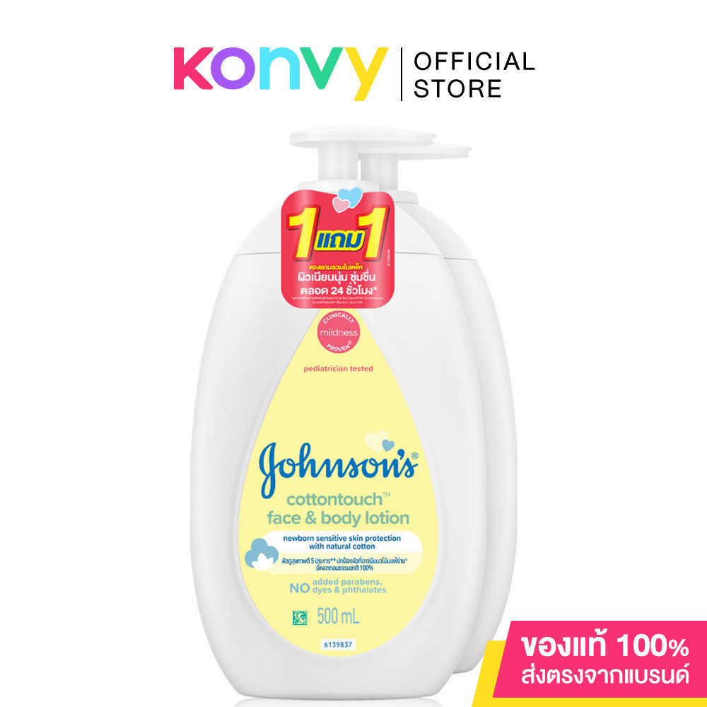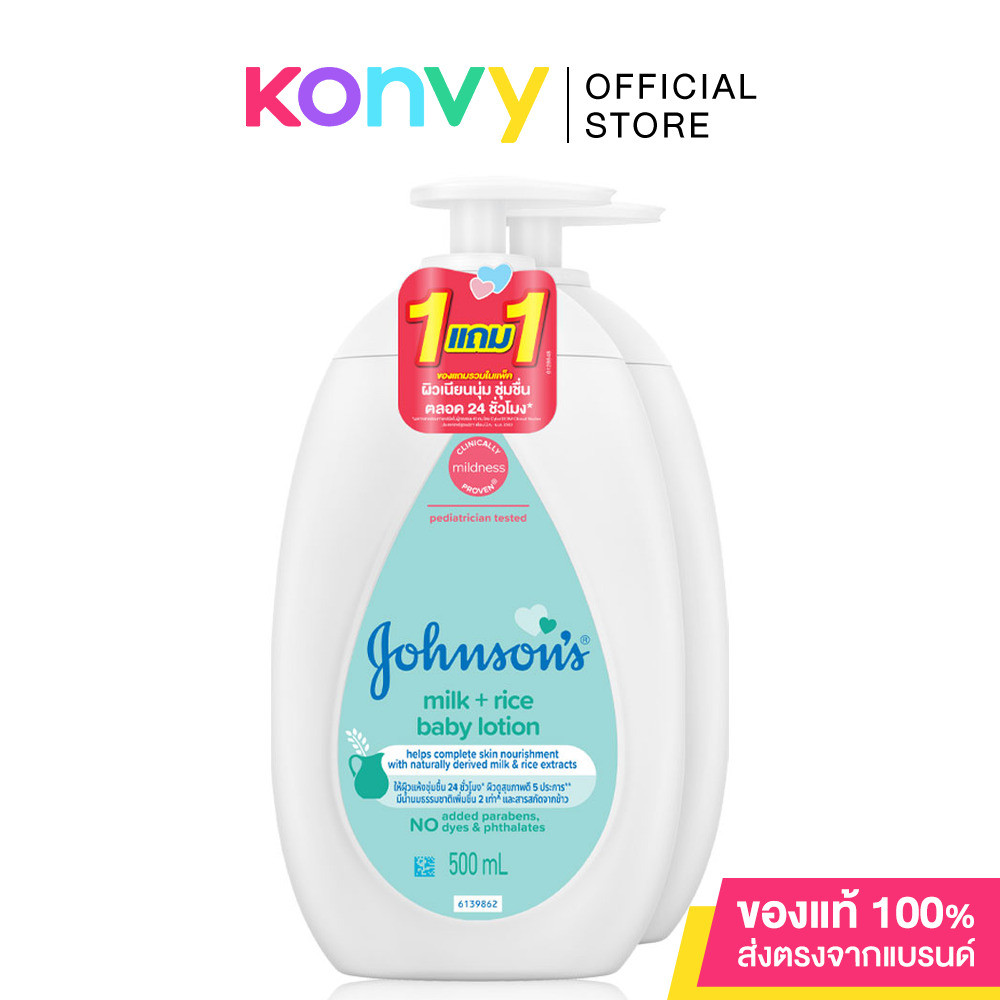 ... Calm จากดอกมะลิ และดอกลิลลี่ ด้วย NaturalCalm® ซึ่งได้รับการพิสูจน์ทางคลินิคแล้วว่า ช่วยทำให้ลูกน้อยรู้สึกหอมผ่อนคลายสบายผิวก่อนเข้านอน • [ซื้อ 1 แถม 1] Johnson Body Lotion Milk + Rice Lotion 500ml โลชั่นบำรุงผิว ผสานคุณค่าน้ำนมธรรมชาติและสารสกัดจากข้าว เพื่อช่วยบำรุงผิวอย่างครบถ้วน โดยให้ความชุ่มชื้นผิวยาวนานตลอดวัน • [ซื้อ 1 แถม 1] Johnson's Body Lotion Cotton Touch Lotion 500ml โลชั่นสูตรบางเบาและอ่อนโยนเป็นพิเศษสำหรับผิวบอบบางของเด็กแรกเกิด มีน้ำเป็นส่วนผสมหลัก ผสานคุณค่าคอตตอนจากธรรมชาติเป็นเอกลักษณ์เฉพาะ เพิ่มความชุ่มชื้นให้ผิวนุ่ม กลิ่นหอมละมุนน่ากอด ไม่เหนียวเหนอะหนะ วิธีใช้: ใช้โลชั่นนวดอย่างอ่อนโยนทั่วร่างกาย เป็นประจำทุกครั้งหลังอาบน้ำ