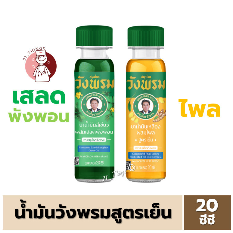 สมุนไพร วังพรม น้ำมันเขียว สูตรเสลดพังพอน / น้ำมันเหลือง สูตรไพล ขนาด 20 cc หมอเฉลิม Wangpromherb