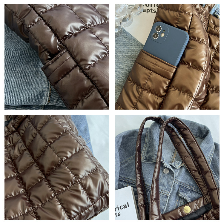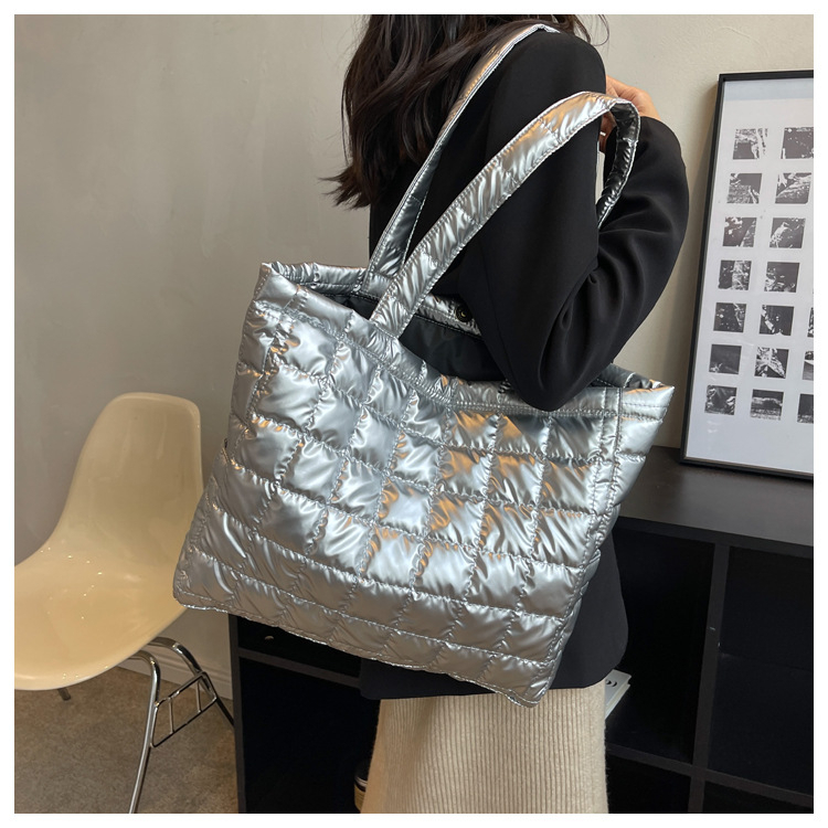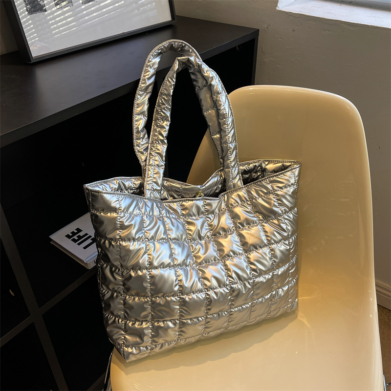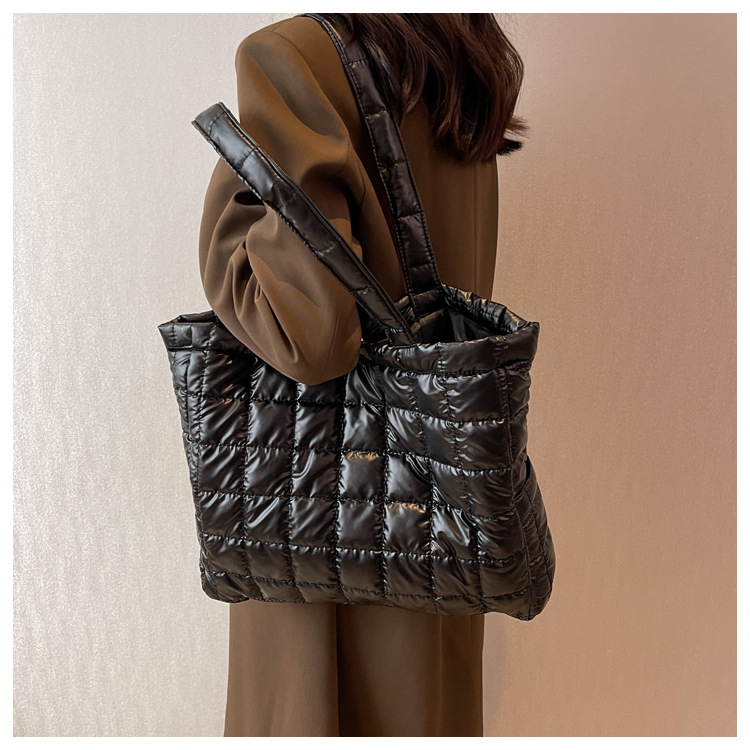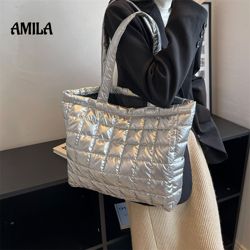 AMILA แฟชั่น เรียบง่าย ตรวจสอบกระเป๋าถือสุภาพสตรี วัสดุเคลือบมัน ทอธ