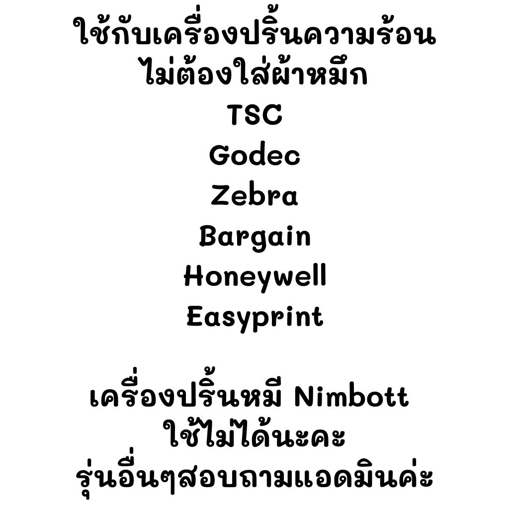 ร้านบ้านหมอใหม่ขอแนะนำสติกเกอร์สำหรับพิมพ์ฉลาก DT สติกเกอร์ความร้อน (direct thermal label) คุณสมบัติ ใช้กับเครื่อง พริ้นความร้อน Thermal printer ไม่ใช้หมึก แกน 4 ซม เช่น xprinter gprinter TSC easyprint Honeywell Godex สอบถามกับทางร้านได้ค่ะ กันน้ำ กันน้ำมัน