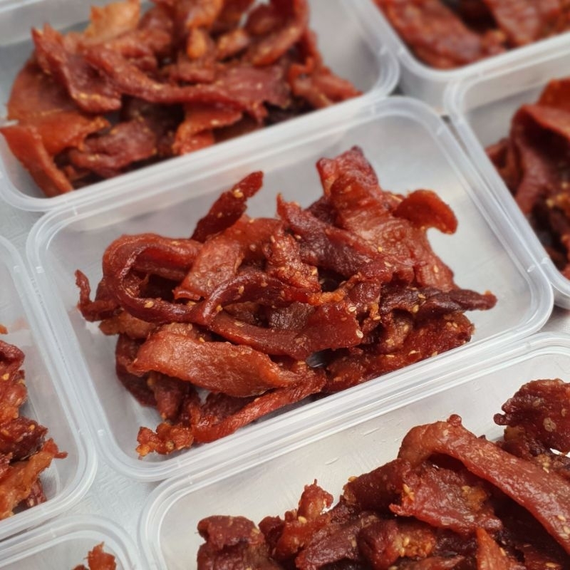 หมูแดดเดียวตากแห้งทอดพร้อมทาน น้ำหนักต่อกล่อง 150-160 กรัม ทอดพร้อมทานอร่อย เปิดกล่องทานได้เลย ทอดใหม่ตามออเดอร์ไม่มีค้างคืน เก็บได้นานไม่ไม่ต้องแช่เย็น 20-30 วัน