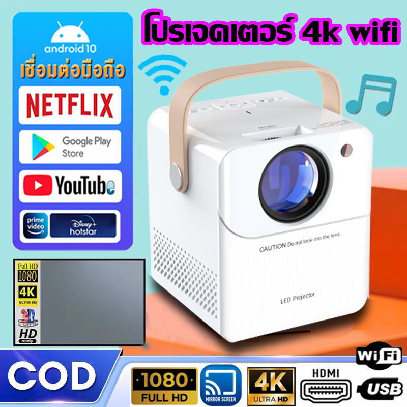 โปรเจคเตอร์ 4K HD projector Android 9.0 160 ANSI ลูเมน ลำโพงในตัว 1*5W โปรเจคเตอร์มินิ โปรเจคเตอร์ดูหนัง โปรเจคเตอร์มินิ