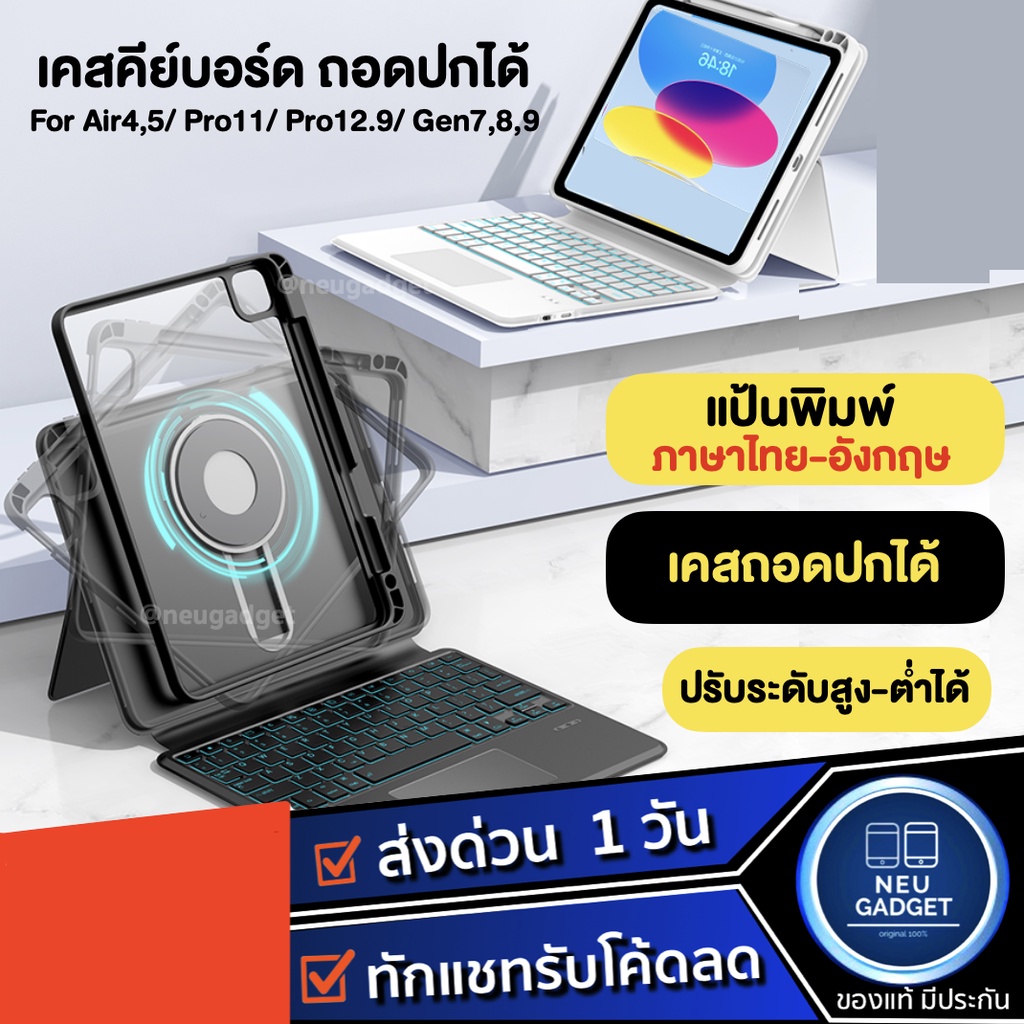 [หมุนได้+ถอดปกได้❗]เคสคีย์บอร์ดสำหรับไอแพด NEU ปรับระดับสูง-ต่ำได้ Air6 Air5 Air4 Gen9 Gen8,7 Pro11 Pro12.9 หมุน360องศา