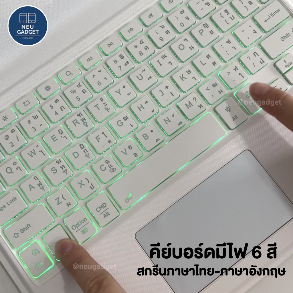 ... ่สุด (แม่ค้าใช้เองคอนเฟิร์ม✅) สำหรับรุ่น 💎 10.2 Gen7/8/9 ( 2019-2020-2021 ) >> ชาร์ตปากกาไม่ได้ เพราะตัวเครื่อง Pad รุ่นนี้ไม่รองรับการชาร์ตปากกาข้างไอแพดอยู่แล้ว (ช่องปากกาอยู่ฝั่งขวา) 💎 Air4 10.9" , Air 5 >> ชาร์ตปากกาได้ (ช่องปากกาอยู่ฝั่งขวา) 💎 Pro 11 ( 2018/2020/2021/2022 ) >> ชาร์ตปากกาได้ (ช่องปากกาอยู่ฝั่งขวา) 💎 Pro 12.9 ( 2018/2020/2021/2022 ) >> ชาร์ตปากกาได้ (ช่องปากกาอยู่ฝั่งขวา) 💎 Gen10 💎 Air3 / Pro10.5 💎 Air6 11 นิ้ว / 13 นิ้ว 💎 Pro11 M4 💎 Pro13 M4 ในส่วนของเคส : - เคสแม่เหล็ก ถอดปกออกได้ ตัวเคสด้านในเป็นแบบหลังใสอะคริลิค โชว์สีและดีไซน์เครื่อง - หมุนได้ 360 องศา (ตั้งได้ทั้งแนวตั้ง-แนวนอน) - เคสสามารถวางได้หลายแบบ ทั้งแนวตั้ง แนวนอน - เคสสามารถปรับระดับสูง-ต่ำได้ (ล้ำมากๆ) - ดูดติดผ่านแม่เหล็กแน่นมาก ด้วยตัวล็อกแบบใหม่ - มีที่ใส่ปากกาในตัว อยู่ฝั่งขวา สามารถชาร์จปากกาได้เลย (AP Pencil 2) - เปิดปิดอัตโนมัติ Auto Sleep - Touch ID ได้ สำหรับ Air4 / Air5 - วัสดุพรีเมี่ยมแบบผสมPU และไมโครไฟเบอร์เบาเข้าด้วยกัน - ด้านในระบายอากาศได้ดี - ไม่ดันฟิล์ม - ยังป้องกันรอยได้อย่างดี กันกระแทกและหุ้มรอบด้าน ในส่วนของคีย์บอร์ด : - คีย์บอร์ดสกรีนภาษาไทย-ภาษาอังกฤษ - มีไฟ 6 สี - เชื่อมบลูทูธ ใช้งานได้เลย -------------------------------------------------- ****รับประกัน 1 เดือน**** ส่งของทุกวัน (สภาพเดิม ไม่ฉีก ไม่ขาด อุปกรณ์ครบ ทั้งสินค้าและแพคเกจจิ้งทั้งหมด) ** สินค้ามีปัญหาจากการผลิต ไม่ใช่จากการใช้งาน กรณีแบตเสื่อม หากไม่ทำตามวิธีที่แนะนำข้างต้น จะไม่สามารถประกันได้ค่า ** ** ห้ามใช้หัวชาร์จที่มี Output เกิน 5V-1A ** ** กรณีส่งเคลม ลูกค้ารับผิดชอบค่าจัดส่ง ❗️ รบกวนลูกค้าอัดคลิปสินค้าตั้งแต่แกะกล่องเพื่อเป็นการยืนยันว่าสินค้าเสียหายจากการผลิตหรือจากการขนส่งนะคะ ขอสงวนสิทธิ์การคืนในกรณีไม่มีคลิปนะคะ ❗️ #เคสforiPad #เคส #เคส10.2 #เคส10.5 #เคส9.7 #เคสAir #เคสไอแพด #เคสไอแพด10.2 #เคสไอแพดgen7 #เคสไอแพดหลังใส #air4 #gen8 #air5 #กระเป๋าไอแพด #ปากกาสำหรับไอแพด #ฟิล์มกระดาษ #ฟิล์มกระจก #ฟิล์มกระดาษแม่เหล็ก #ฟิล์มแม่เหล็ก #เคสสำหรับไอแพด #เคสใส #เคสหลังใส #case #caseforipad #เคสคีย์บอร์ด #คีย์บอร์ด