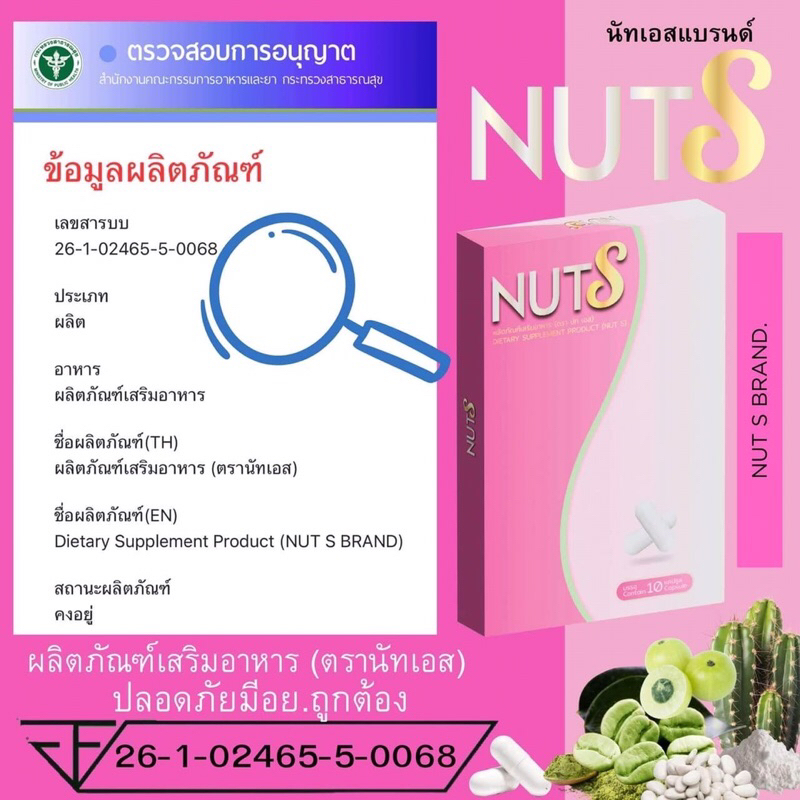 ผลิตภัณฑ์เสริมอาหาร แคปขาว 1แผง15แคปซูล ผลิตภัณฑ์เสริมอาหาร นัทเอส 1กล่อง10แคปซูล