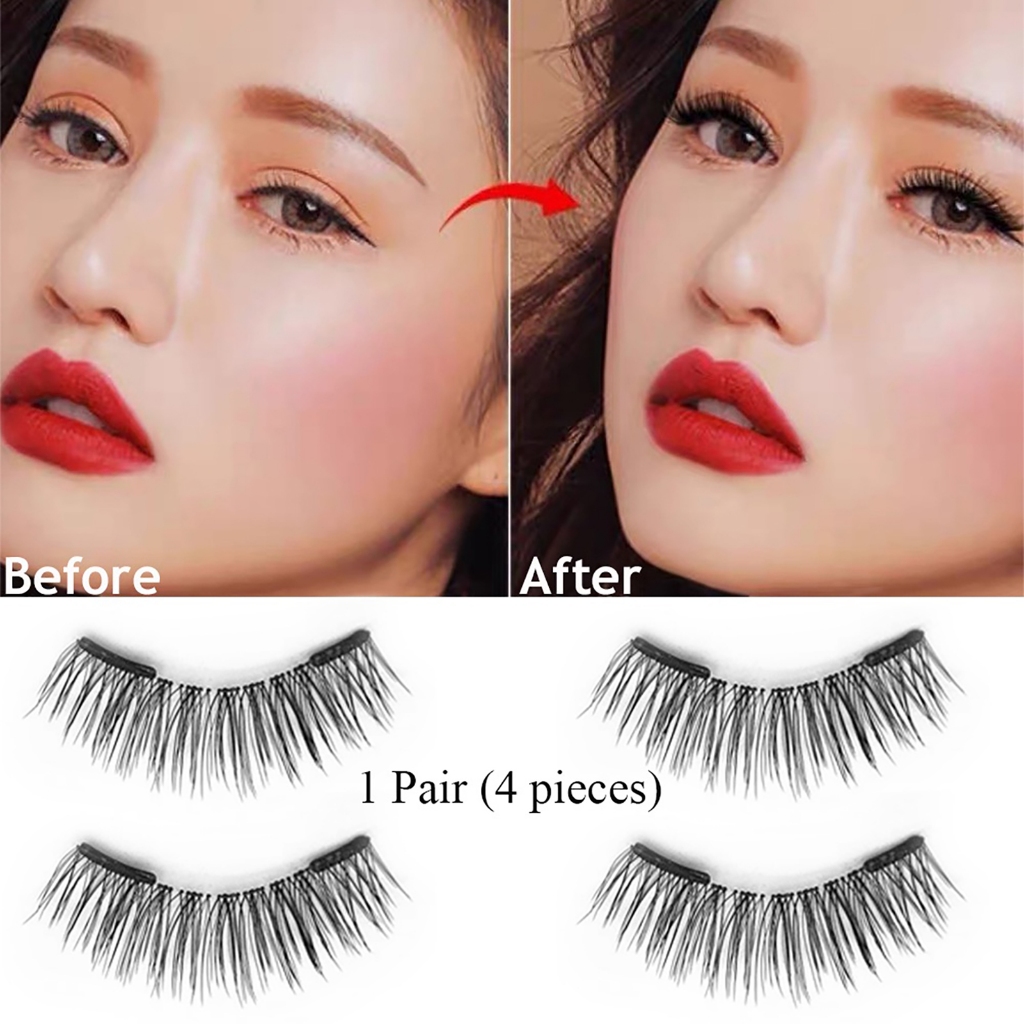 ขนตาปลอมแม่เหล็ก 1 คู่พร้อมคลิป, ขนตาปลอมธรรมชาติ, นำกลับมาใช้ใหม่ได้, ไม่มีกาว, ขนตาปลอม 3D ปลอดภัยสำหรับการแต่งหน้า