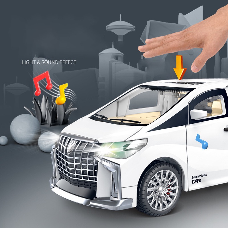 รุ่นรถ Toyota Alphard มีเสียง มีไฟ เปิดประตูได้ทุกบาน โมเดลรถยนต์ ของเล่นเด็กผู้ชาย พร้อมส่ง Car รถโมเดลเหล็ก รถของเล่น