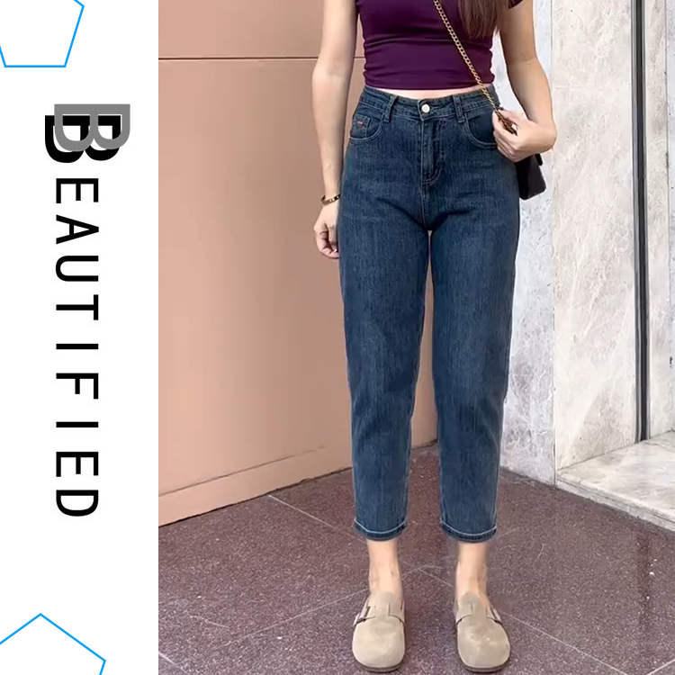 beautified กางเกงยีนส์ขายาว ผ้ายืด เอวสูง สำหรับสาวอวบ