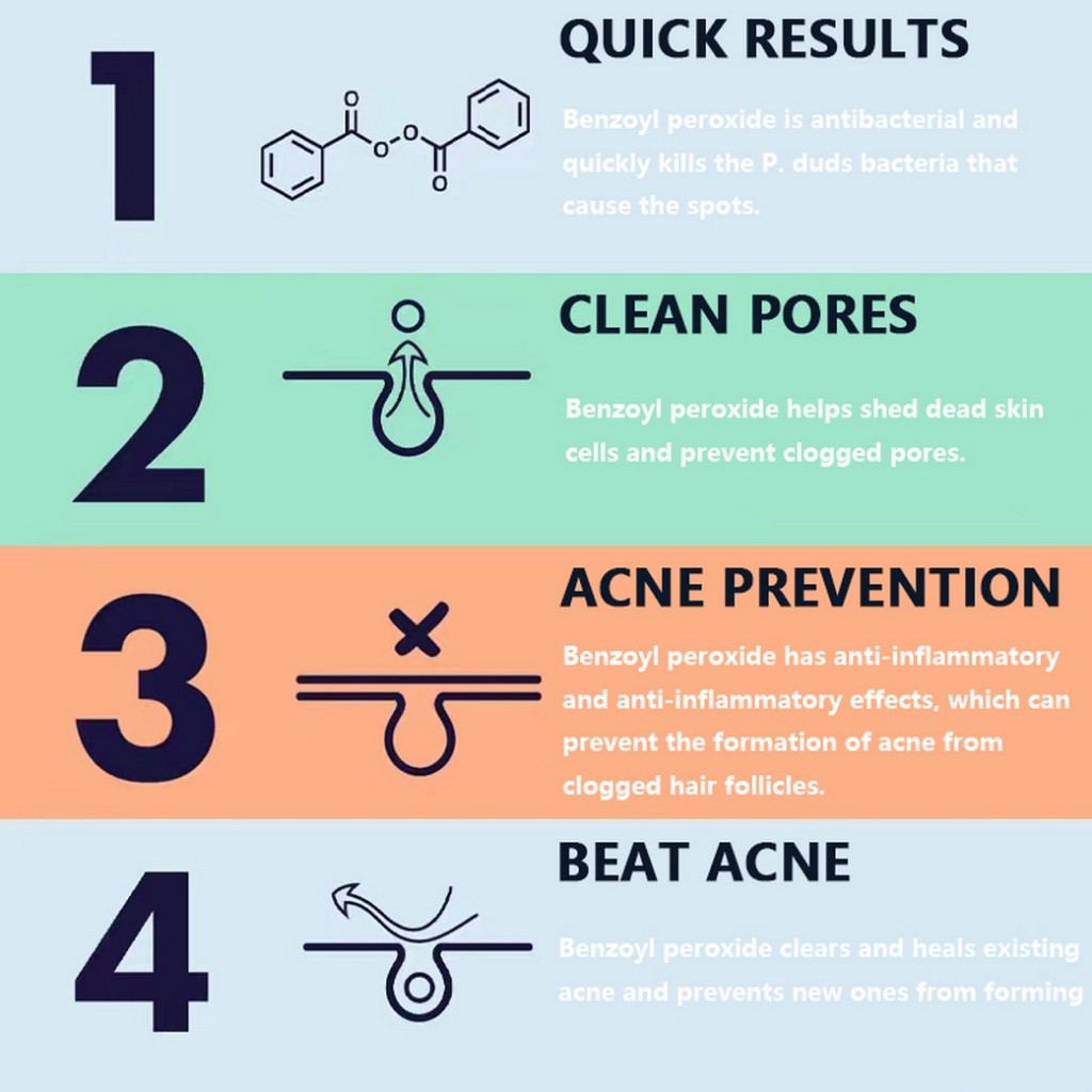 รายละเอียดสินค้า สูตรความเร็วสูงสุดประกอบด้วยเบนโซลออกไซด์ 10% * เป็น Benzoyl peroxide ที่ขายตามเคาน์เตอร์สูงสุด * * เป็น Benzoyl peroxide ที่ขายตามเคาน์เตอร์สูงสุด * - ความแข็งแรงสูงสุดโฟมฆ่าเชื้อแบคทีเรียที่ก่อให้เกิดสิวเมื่อสัมผัสและดึงสิ่งสกปรกออกจากรูขุมขนเพื่อให้คุณรู้สึกสดชื่นและกร