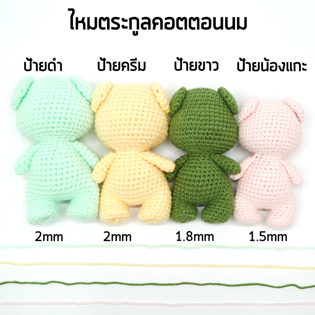 ... วามแน่นของการถักแต่ละบุคคล ไหมแต่ละล็อตการผลิตอาจจะมีสีที่ต่างกัน เพราะควบคุมโรงงานยากมากค่า อาจจะเฉดเพี้ยน หรือสีเข้มอ่อนต่างกันได้ แนะนำให้สั่งให้เพียงพอต่อการใช้งานแต่ละชิ้นงาน เพราะหากสั่งเพิ่ม แต่เป็นคนละล็อตการผลิต อาจได้สีต่างจากเดิมค่ะ (ที่ร้านมีของอยู่หลายล็อตค่ะ หากสั่งมาในออเดอร์เดียวกันจะเลือกในล็อตผลิตเดียวกันส่งให้) หากเป็นการสั่งเพิ่มเติมคนละออเดอร์เพื่อทำชิ้นงานเดิมแล้วได้สีต่างจากเดิม ร้านจะไม่สามารถรับผิดชอบให้ได้