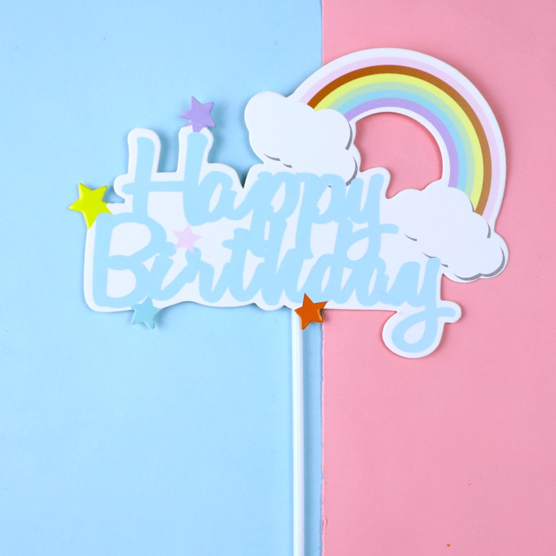 ป้ายท็อปเปอร์ ลายก้อนเมฆ สีรุ้ง สําหรับตกแต่งเค้กวันเกิด 10 ชิ้น ต่อชุด