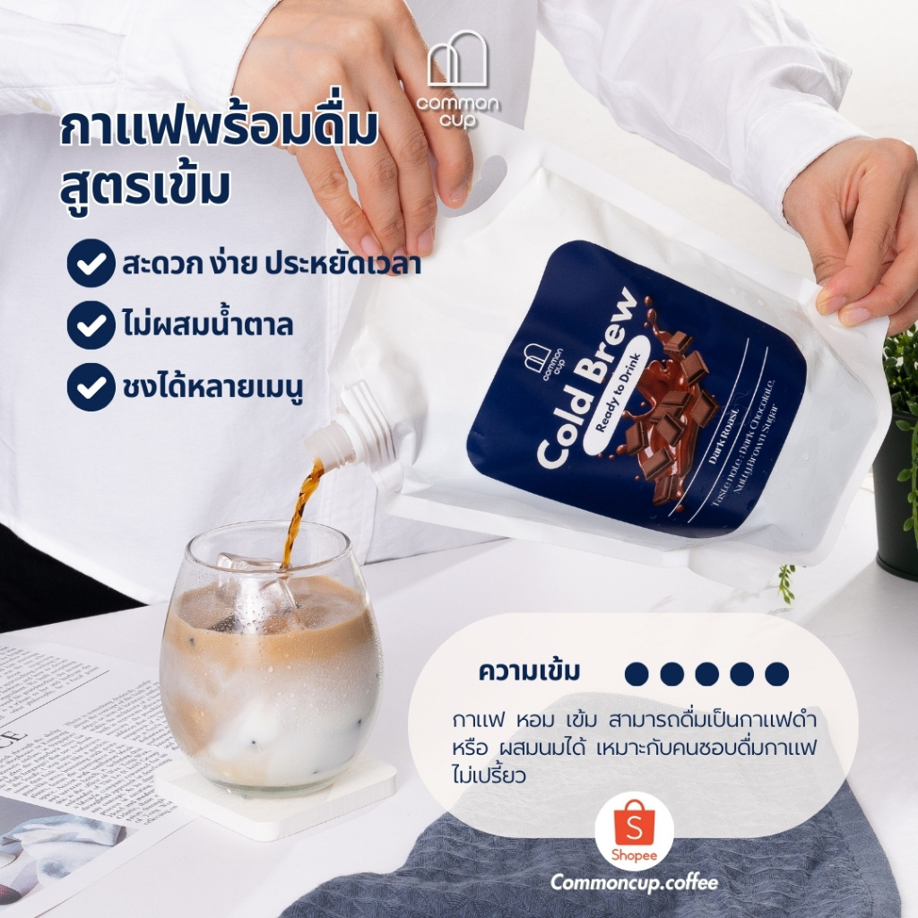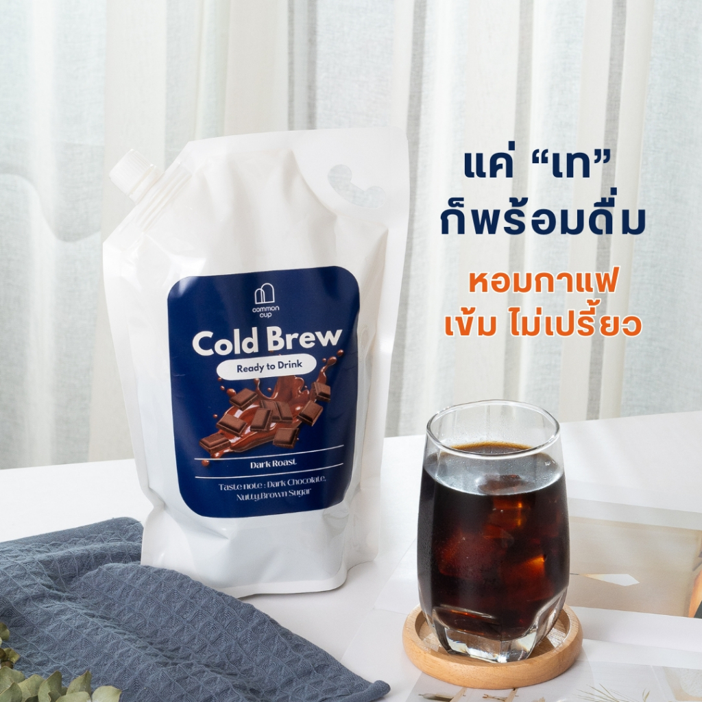 พร้อมส่ง!!! Common Cup Cold Brew cold brew Ready to Drink! แบบพร้อมดื่ม ไม่ต้องผสมน้ำ แต่หากรู้สึกเข้มไปสามารถเติมน้ำปรับสัดส่วนได้ตามต้องการ กาแฟสกัดเย็นพร้อมดื่ม สูตรเข้ม ใช้เมล็ดกาแฟคั่วเข้ม หอม เข้ม “เปิด เท ดื่ม” ง่ายๆ ในวันเร่งรีบ แนะนำทานเย็น ทานได้ทั้งกาแฟดำและกาแฟนม หรือจะนำไปผสมน้ำผลไ