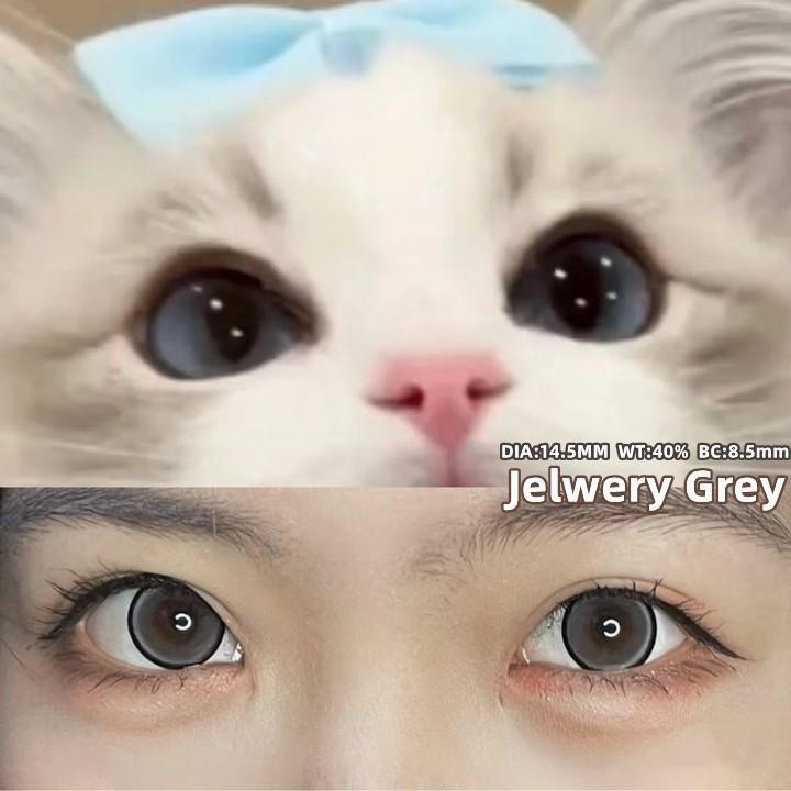 Midroo คอนแทคเลนส์ลายฮิต สายตาปกติ คอนแทคเลนส์ รายเดือน Jelwery Grey/ Brown 1คู่- 14.5mm