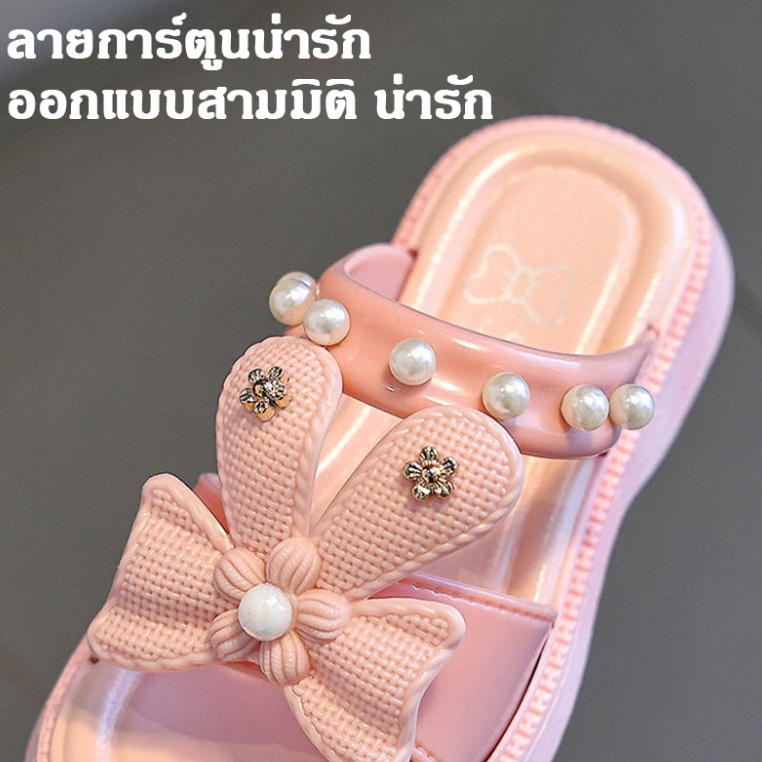 Kids รองเท้าแตะ เปิดนิ้วเท้า ประดับไข่มุก แฟชั่นฤดูร้อน สไตล์เจ้าหญิง สําหรับเด็กผู้หญิง (พร้อมส่งในไทย)