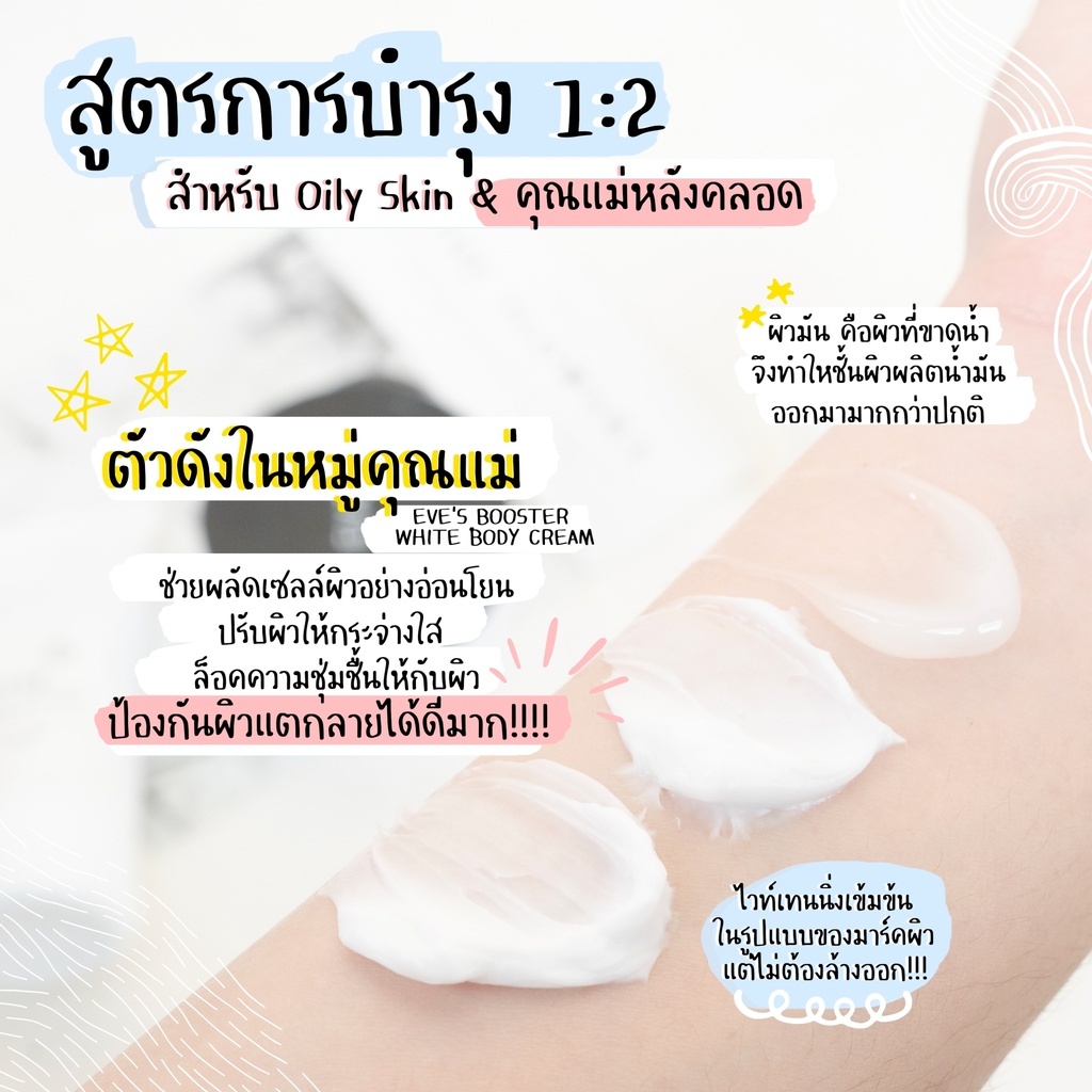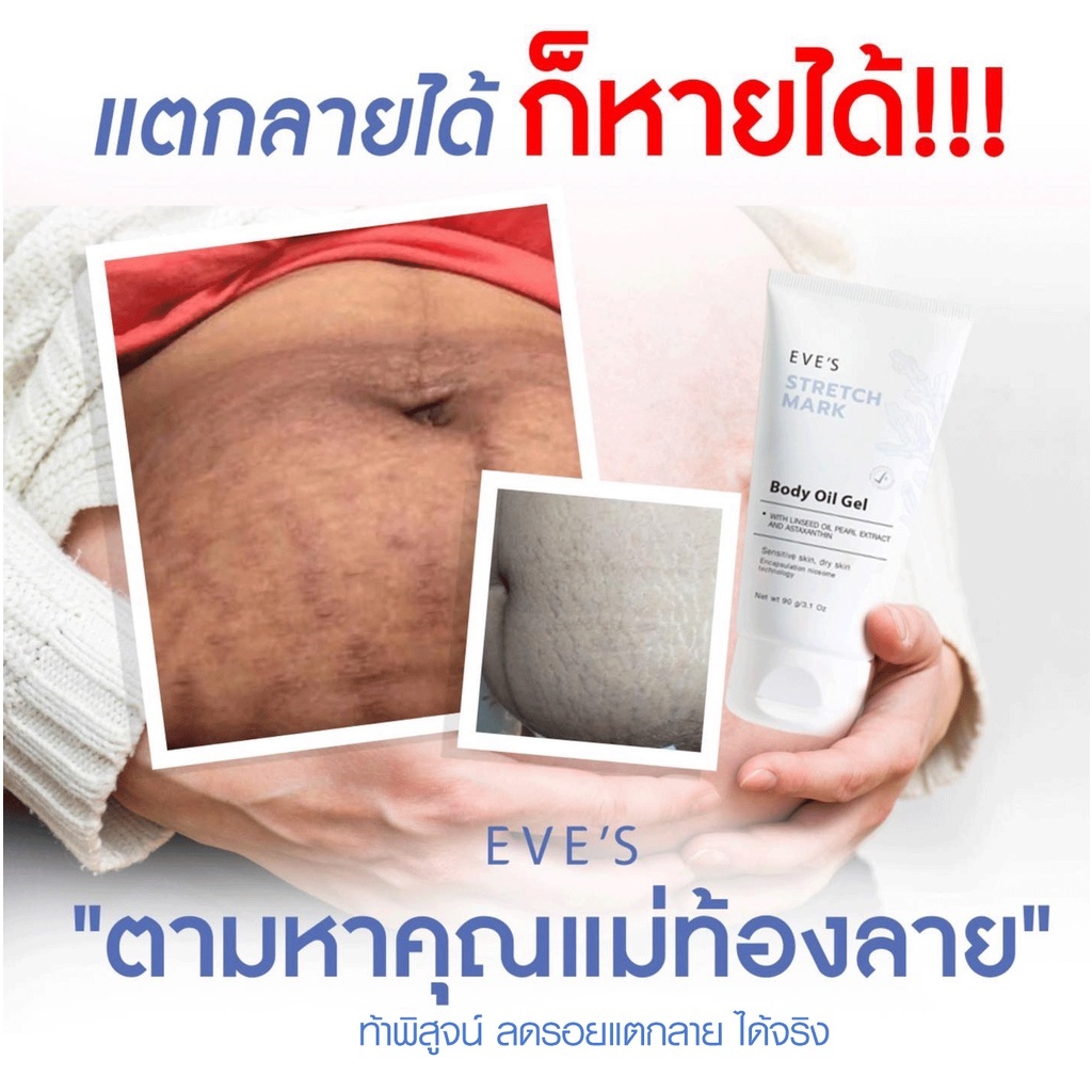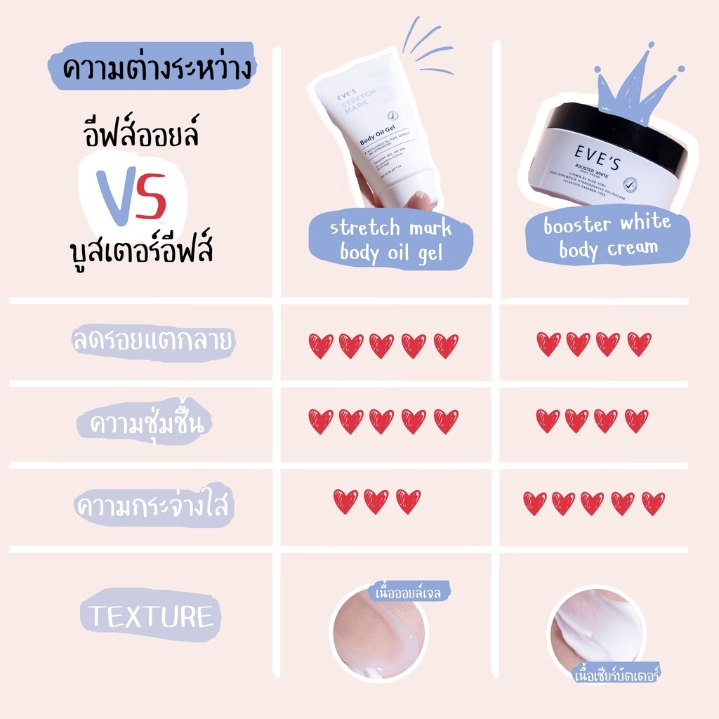EVE'S อีฟส์ เซตคู่ ลดรอยแตกลาย รอยแผลเป็น แตกลายขาว แตกลายแดง บูสเตอร์ครีม อีฟส์ออย ออยล์ ครีมทาท้อง คนท้องใช้ได้