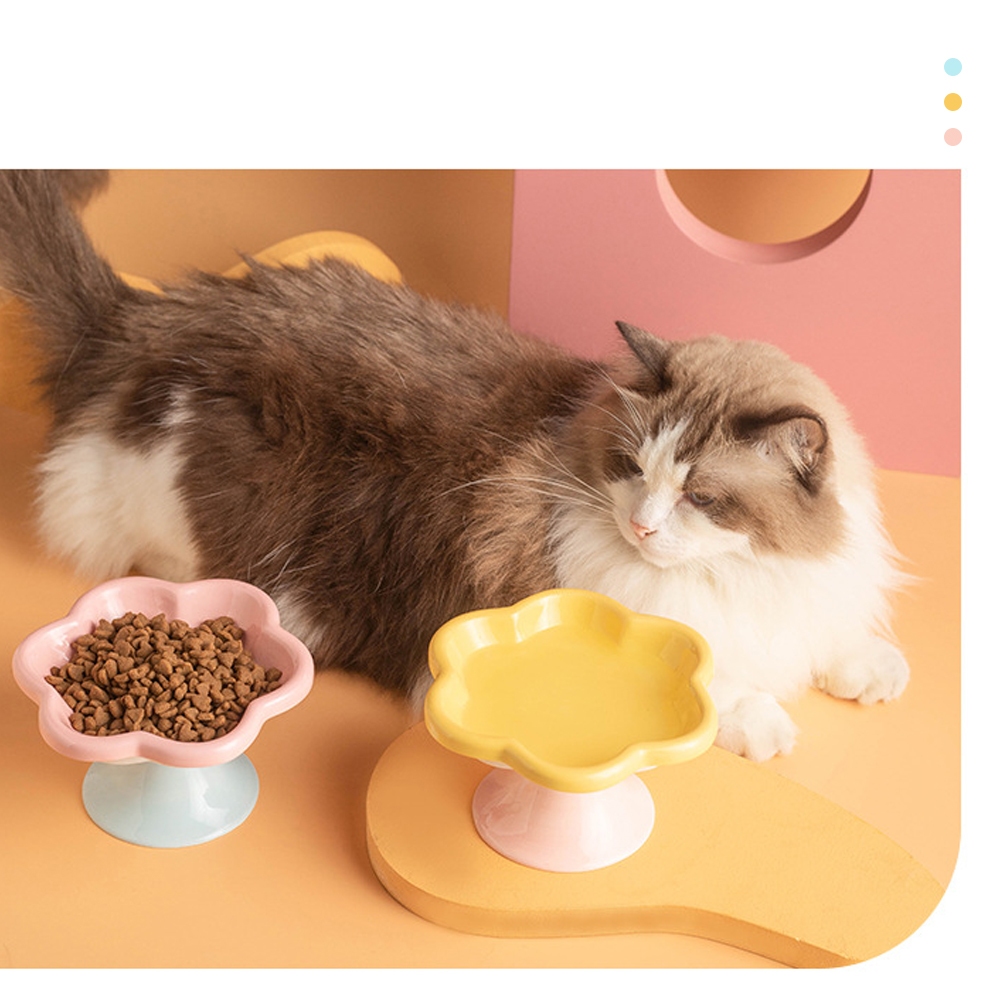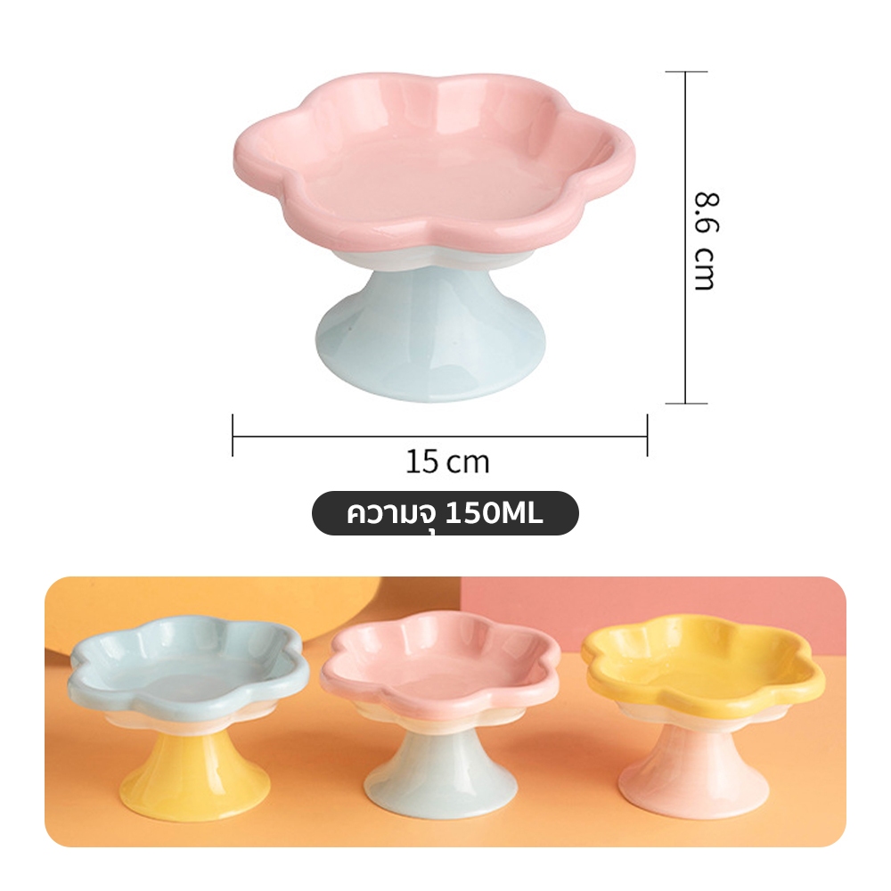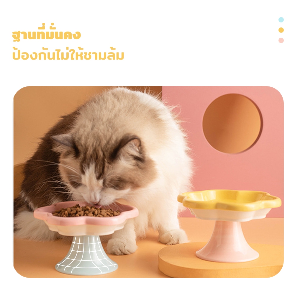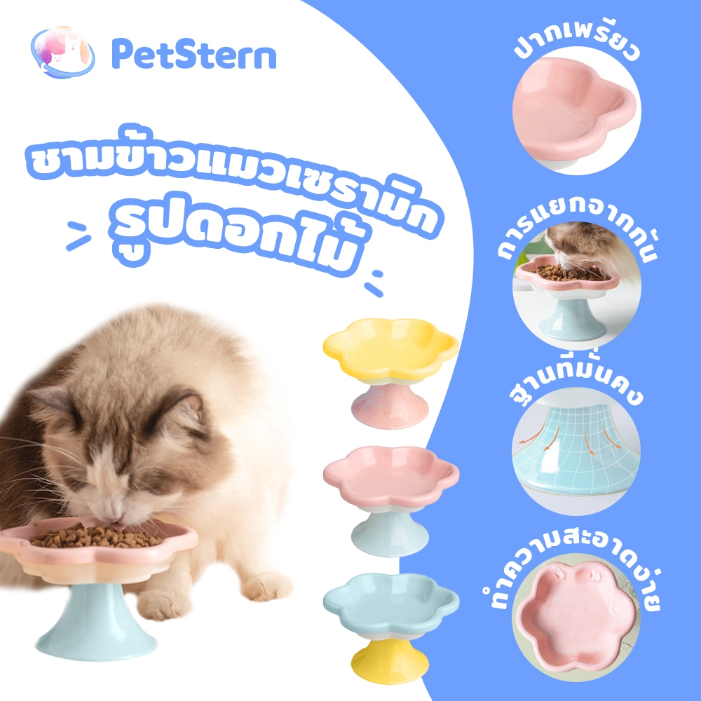 PetStern ชามอาหารแมวเซรามิค รูปทรงดอกไม้ ป้องกันการพลิกคว่ํา สุนัข แมว ชามอาหารสัตว์เลี้ยง