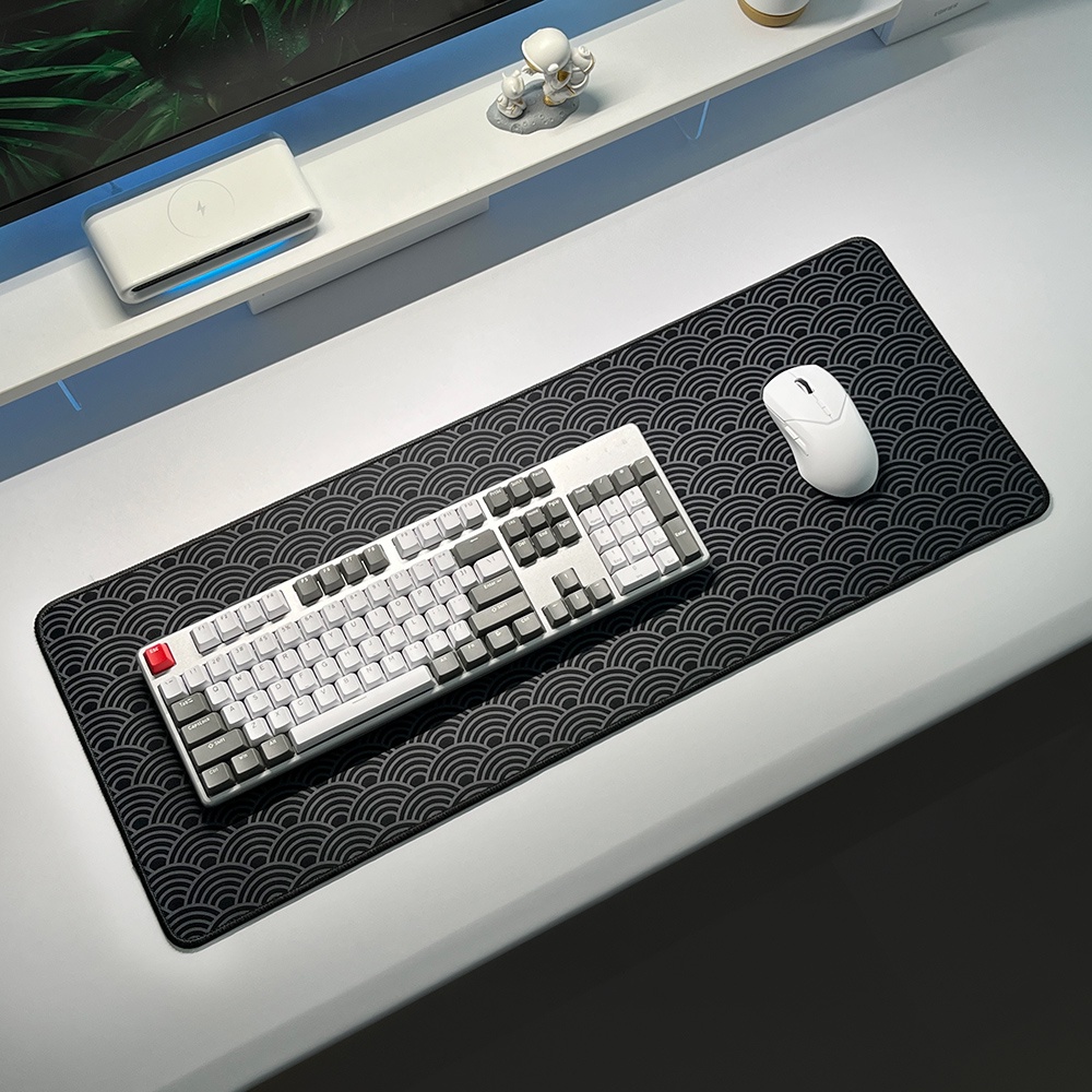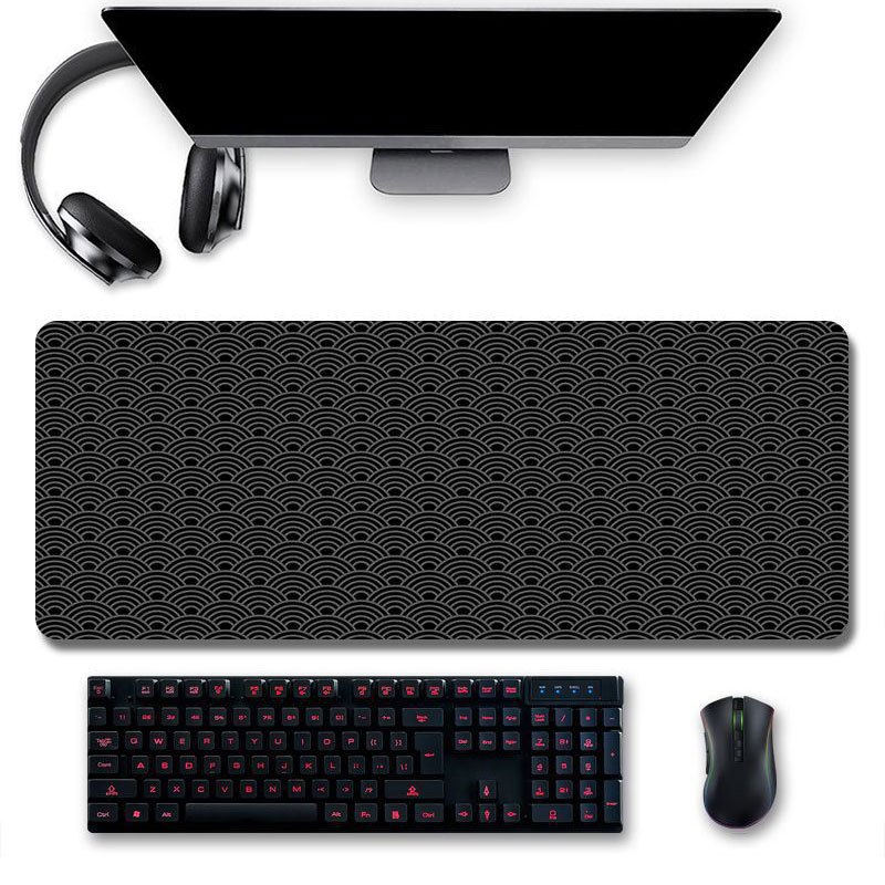 แผ่นรองเมาส์ แบบหนา | ผ้าปูโต๊ะ ลายคลื่น สีดํา สไตล์ญี่ปุ่น | แผ่นรองเมาส์เล่นเกม ขนาดใหญ่ 80x30/90x40/100x50/120x60x3mm