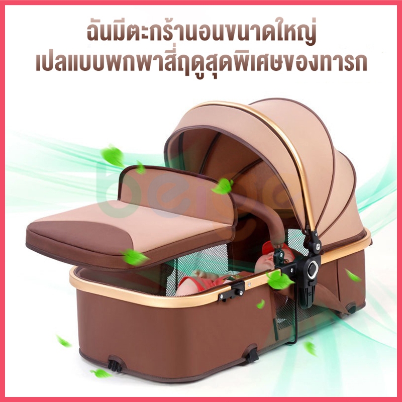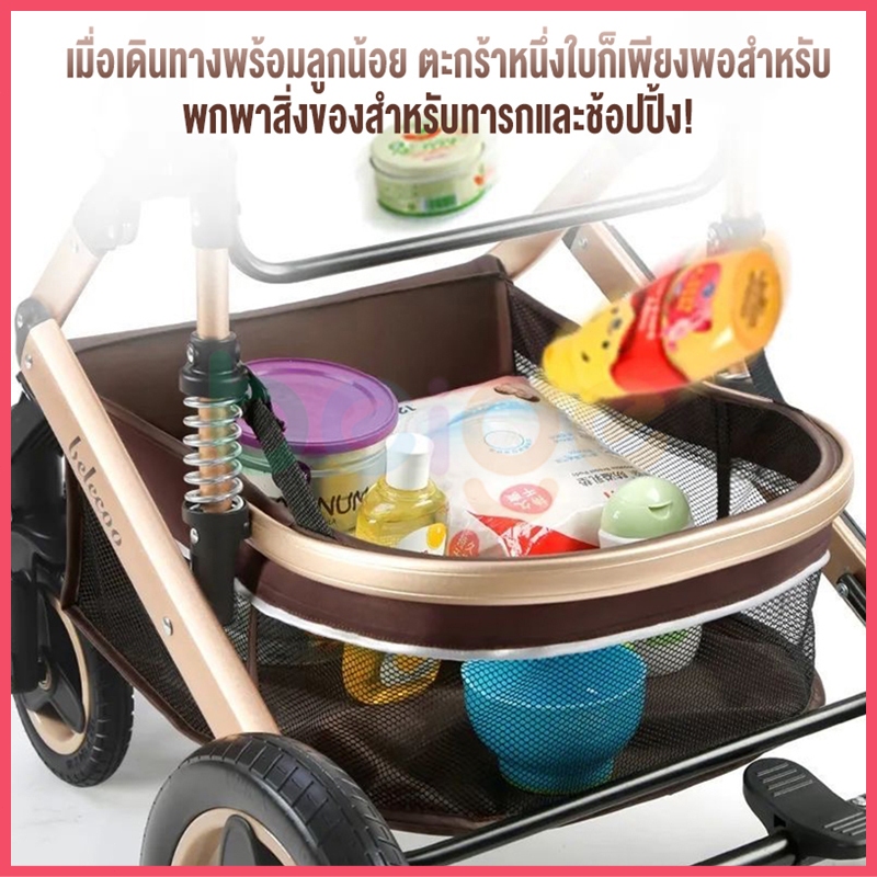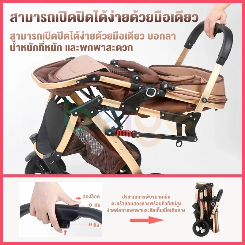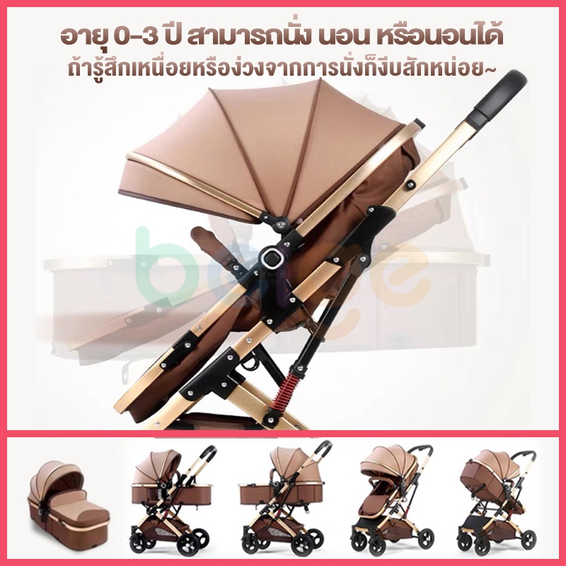 Beige รถเข็นเด็ก รถเข็นเด็กพับได้ เข็นหน้า-หลัง โช๊คอัพ ล้อ พร้อมเบรก พกพาสะดวก เข็นหน้า-หลังได้ รถเข็นเด็กเอนกประสงค์