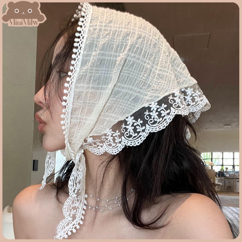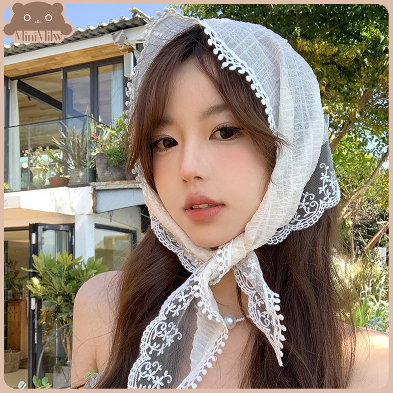 [พร้อมส่งไทย] ผ้าโพกหัวแต่งขอบลูกไม้ มี 34 แบบ หวานน่ารักใส่ได้หลายลุค ใส่ไปทะเล : MiniMilwʕ•ᴥ•ʔ