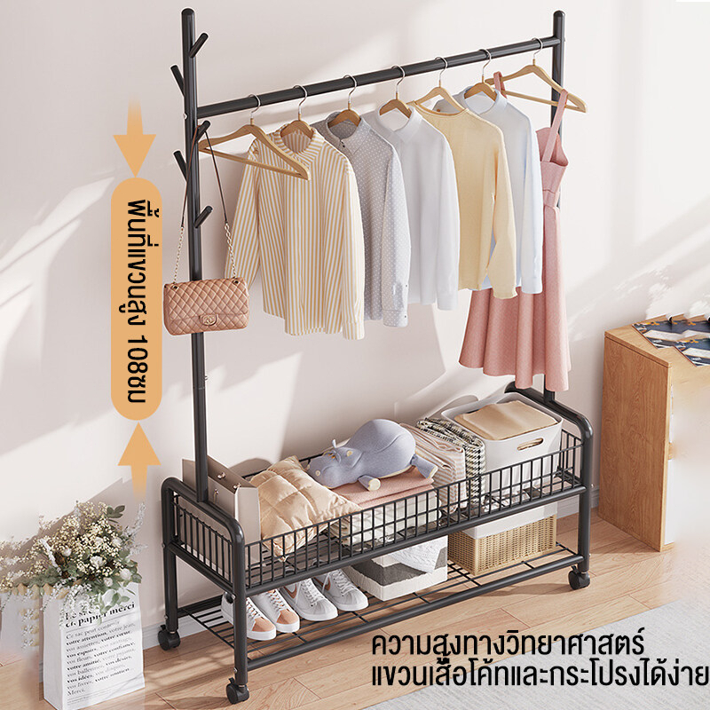 [เสาเเขวนหมวก+กระเป๋า]ราวแขวนผ้า มีตะขอ พร้อมเสาแขวนกระเป๋าได้ มีล้อเลื่อน โครงเหล็ก เเข็งเเรง ง่ายต่อการเคลื่อนย้าย