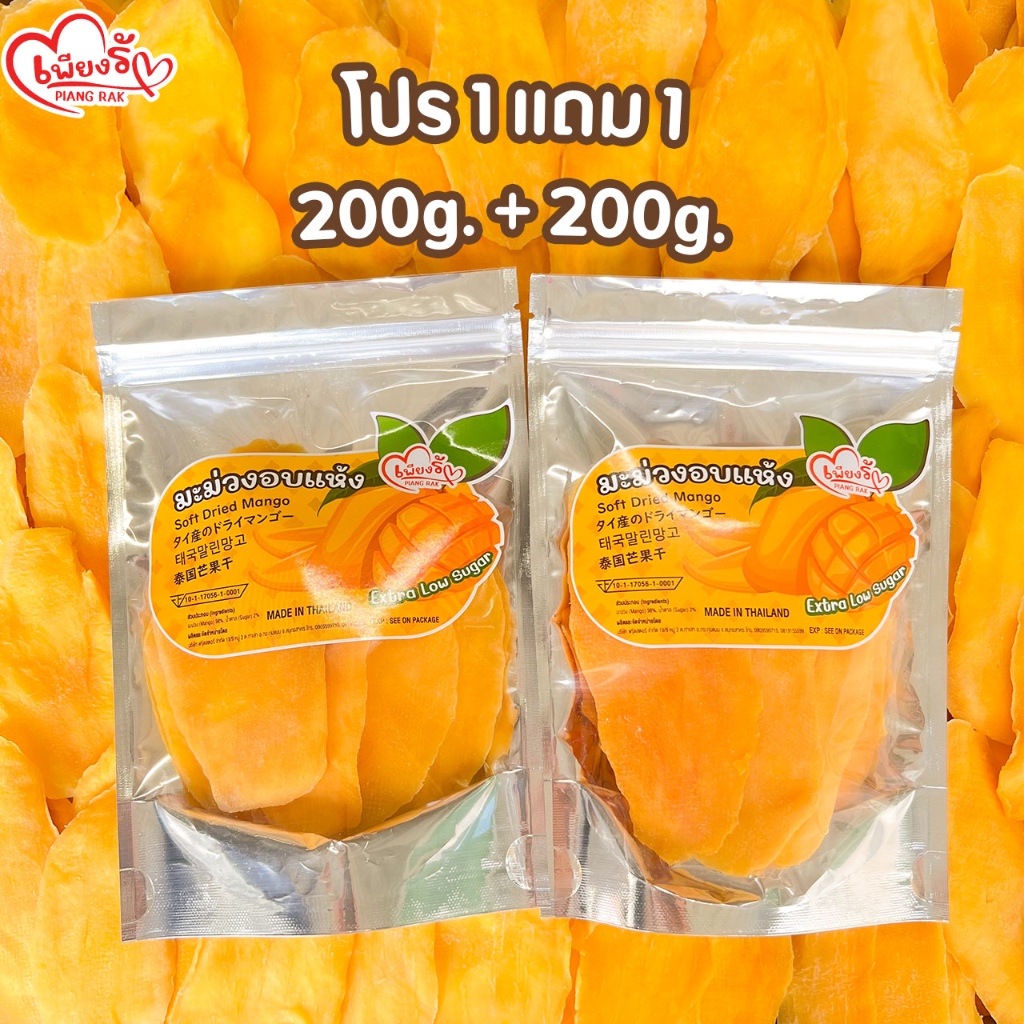 เพียงรัก - โปร 1แถม1 มะม่วงอบแห้งชิ้นเต็ม เกรด A+ ไม่เติมน้ำตาล (No Sugar) รสหวานอมเปรี้ยว เนื้อนุ่ม ไฟเบอร์สูง