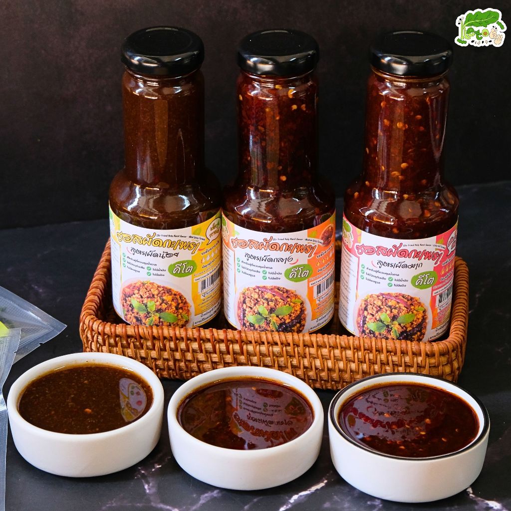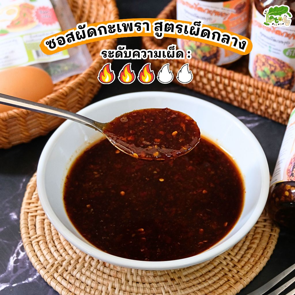 ... พริกแห้ง 2 เม็ด ใบกะเพรา 5 กรัม และใบมะกรูด 2 ใบ ง่าย ครบ จบในที่เดียว 🔻 ข้อมูลสำหรับผู้แพ้อาหาร : มีส่วนผสมของถั่วเหลือง ปลา และสาหร่าย มี 3 ระดับ ความเผ็ดให้เลือก 🔥 ซอสผัดกะเพราสูตรเผ็ดน้อย ซอสกะเพราสูตรเผ็ดน้อย ความเผ็ดพอดี เหมาะสำหรับผู้ที่อยากลองทานเผ็ด 📍 มีเลขสารบบ อย. ถูกต้องตามกฎหมาย 30-2-06863-6-0136 🔥🔥 ซอสผัดกะเพราสูตรเผ็ดกลาง ซอสกะเพราสูตรเผ็ดกลาง เข้มข้นจัดจ้าน อร่อยลงตัว 📍 มีเลขสารบบ อย. ถูกต้องตามกฎหมาย 30-2-06863-6-0135 🔥🔥🔥 ซอสผัดกะเพราสูตรเผ็ดมาก ซอสกะเพราสูตรเผ็ดมาก รสชาติเผ็ดคูณสอง เหมาะสำหรับคนที่ชอบความอร่อยแบบจัดจ้าน 📍มีเลขสารบบ อย. ถูกต้องตามกฎหมาย 30-2-06863-6-0133 🍳 วิธีทำ 1. เตรียมเนื้อสัตว์ 200 กรัม น้ำซอสสำเร็จรูป 80 กรัม ใบกะเพรา 20 กรัม หรือปริมาณตามชอบ 2. ตั้งกระทะนำเนื้อสัตว์ลงไปรวน เติมน้ำเปล่าเล็กน้อย เพื่อให้เนื้อสัตว์สุกง่ายขึ้น 3. ผัดจนเนื้อสุก ใส่น้ำซอส และใบกะเพราลงไป แล้วผัดทุกอย่างให้เข้ากัน จนตัวน้ำซอสแห้งเข้ากับเนื้อสัตว์ 4. ปิดไฟ ตักใส่จานพร้อมเสิร์ฟ 📌 ซอส 1 ขวด นำมาผัดกับเนื้อสัตว์ได้ 700 กรัม สามารถผัดกับเนื้อสัตว์ได้ทุกชนิด 🌿 เมนูแนะนำ กะเพราหมูสามชั้น กะเพราอกไก่ กะเพรากุ้ง กะเพราเนื้อ หรือเมนูไหนๆ ก็อร่อยครบ จบในขวดเดียว 📌วิธีการจัดเก็บ สามารถเก็บที่อุณหภูมิห้องได้ปกติ หรือหลังจากเปิดฝาแล้วควรปิดฝาให้แน่นสนิท และแนะนำจัดเก็บในตู้เย็น 📌ซอสทุกขวดผ่านการสเตอร์ริไลซ์ฆ่าเชื้อ รับประกันคุณภาพทุกขวด สั่งกับคีโตดิ๊ รับรองไม่มีผิดหวัง 🎎 ขอบคุณที่อุดหนุนครับ