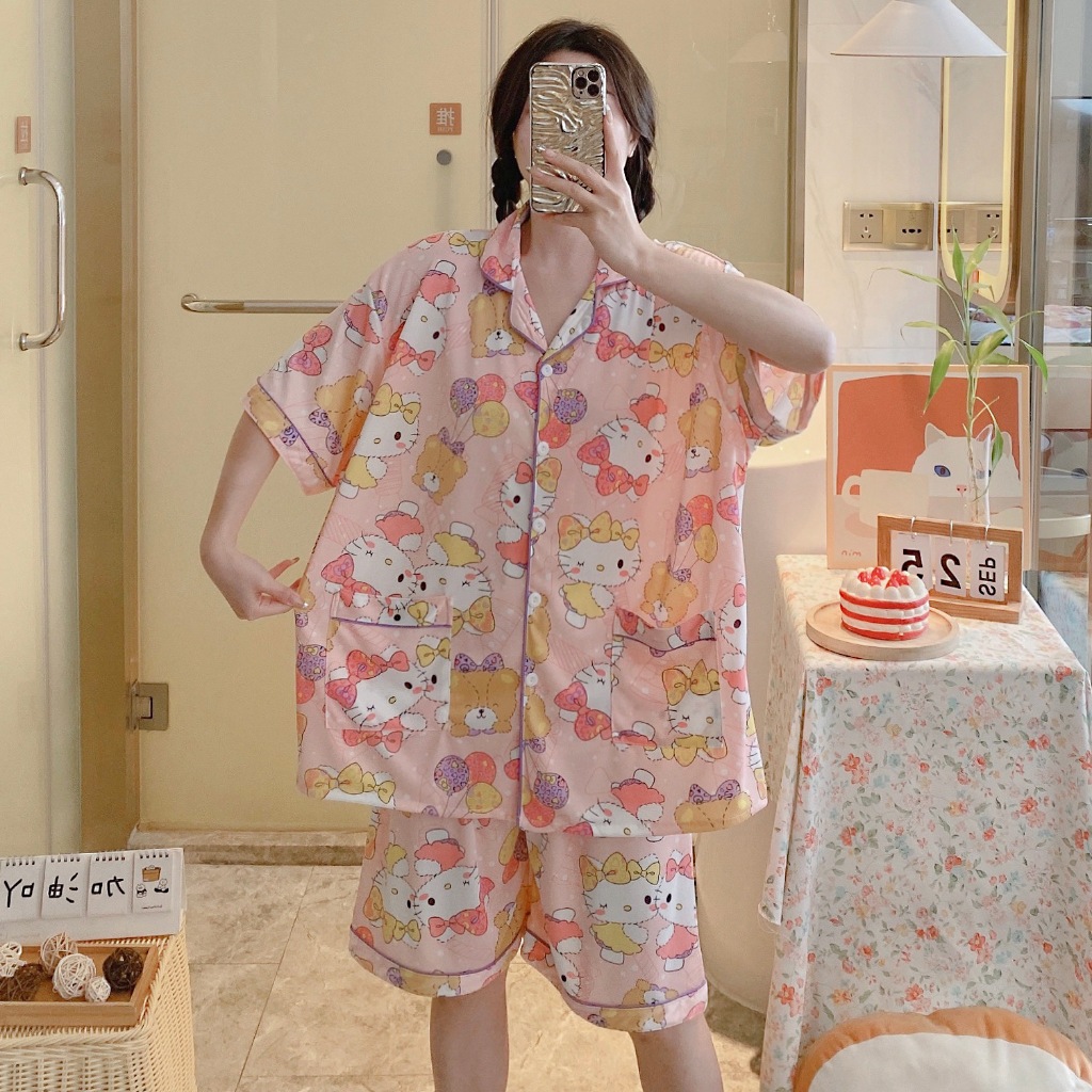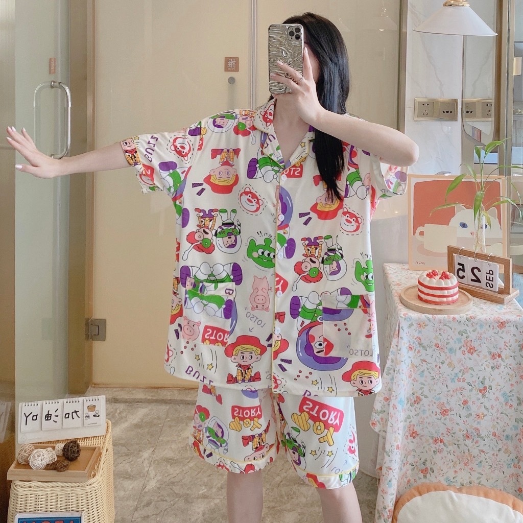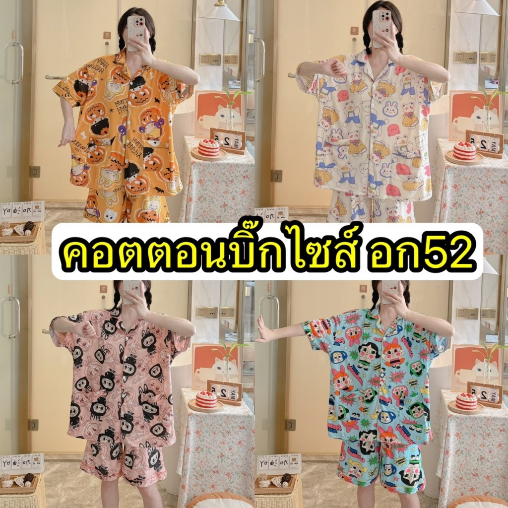 💟พร้อมส่ง💟 ชุดนอนผ้าคอตตอน ลายการ์ตูน เเขนสั้น-ขาสั้น บิ๊กไซส์