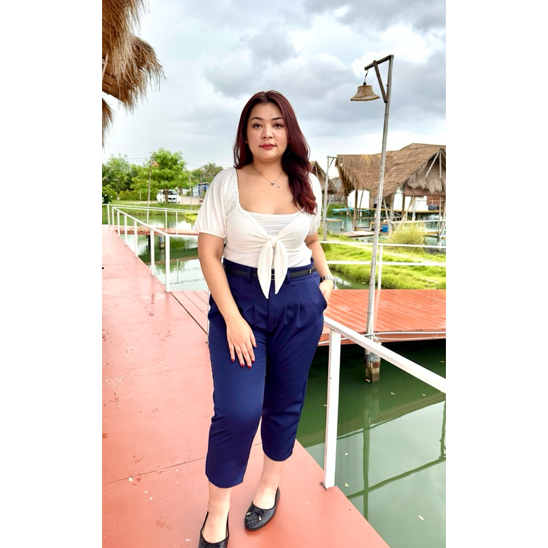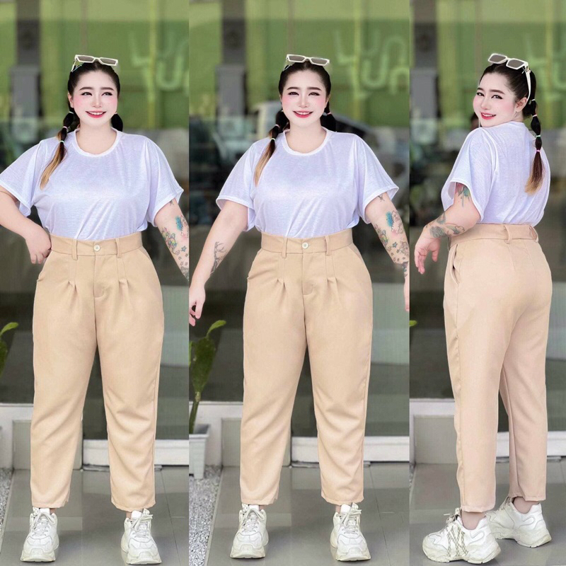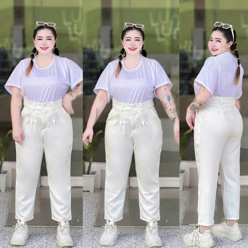 กางเกงทรงบอยขายาวสาวอวบ ไซส์เริ่มต้นXL-48 ถึงเอว58ไซส์พิเศษ ไซส์งานวัดจากหน้าผ้าจริงไม่ต้องเผื่อหรือลดไซส์ มีกระดุมหน้า+ซิปหน้า เอวสูงไม่รั้งเป้า เป้าลึก14นิ้ว ความยาวกางเกง36นิ้วทุกไซส์ ขยับขึ้นตามไซส์ ใส่แล้วขอบเอวอยู่เหนือตะขอ1นิ้ว สูง150-155 ใส่แล้วขาไม่กองไม่ยาวเกินไปพอดีตาตุ่ม สูง155-170 ใส่แล