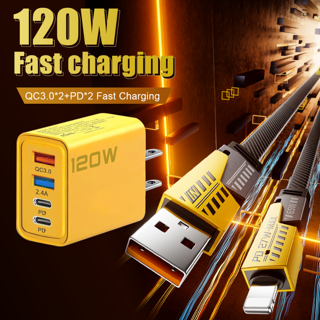 ชุดชาร์จเร็ว PD 3.0 ชุดชาร์จ 120W ชาร์จเร็วสุด QC 3.0 Fast charging ชาร์จเร็ว 4 ช่อง สําหรับ Android /IOS ทุกรุ่น
