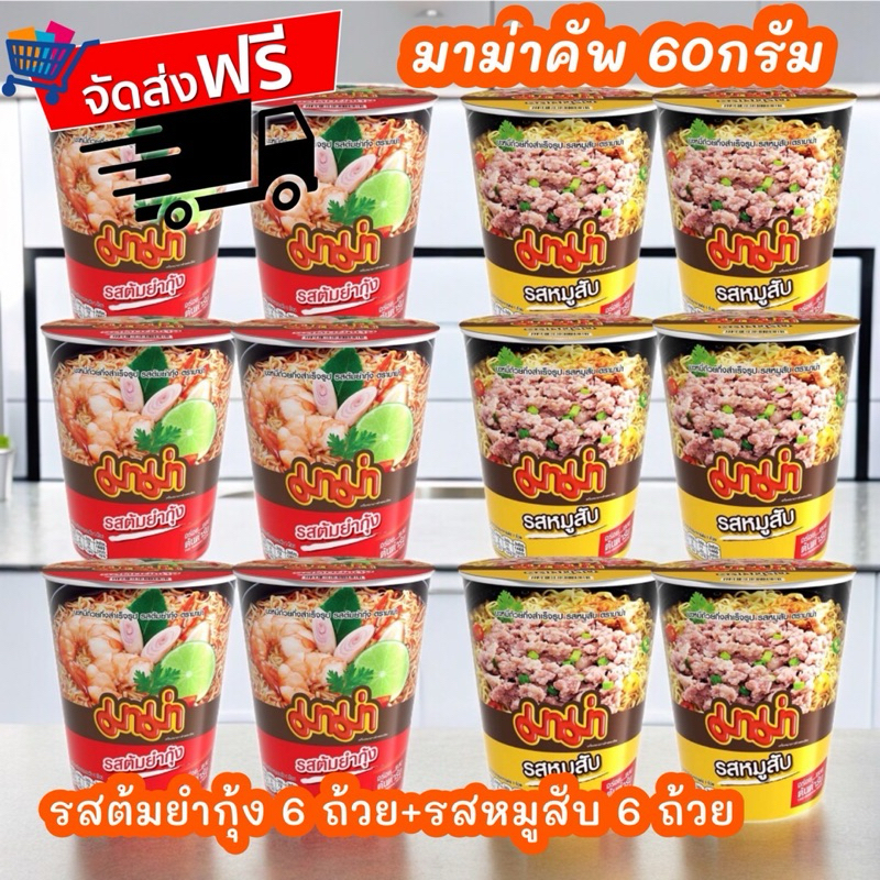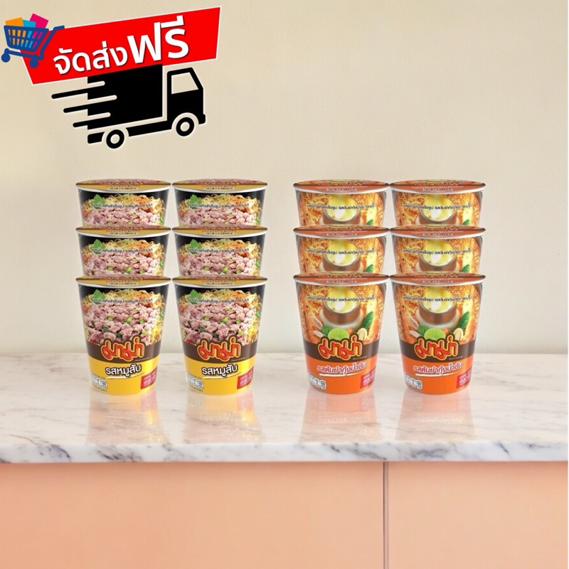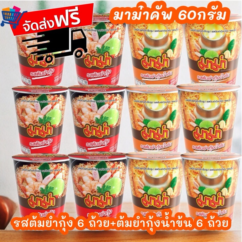 ❤️จัดส่งฟรี❤️มาม่าคัพ บะหมี่กึ่งสำเร็จรูป “คละรส” รสต้มยำกุ้ง,รสต้มยำกุ้งน้ำข้น ขนาด60กรัมX12ถ้วย