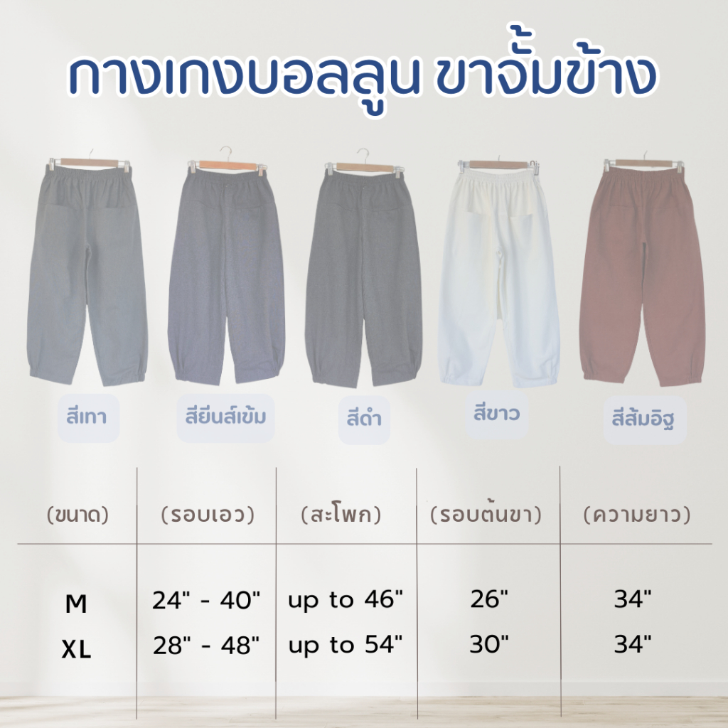 👖 ให้ลุคที่ดูเรียบท่ห์ แต่ใส่สบาย สไตล์ผ้าฝ้าย 👖 กางเกงผ้าฝ้ายสไตล์ญี่ปุ่น 🎌 ทรงบอลลูนขาจั้มข้าง ✅ มีกระเป๋าด้านหน้า 2 ข้าง ✅ ใส่สบาย ใส่ได้ทั้งชายและหญฺิง ✅ เอวยางยืดแบบหนา ✅ ดีไซน์แปลกตา ขาจั้มข้าง สวยเก๋ 🚩 Size M --> เอว 24-40 นิ้ว // สะโพก 44-46+++ // ยาว 33-34 นิ้ว 🚩 Size XL -