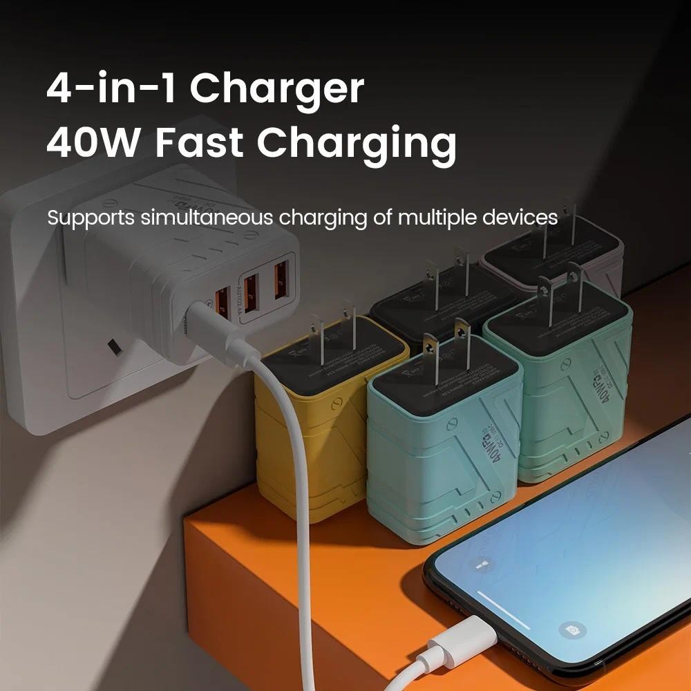 40w USB Type C Charger 4 พอร ์ ต Fast Charging โทรศัพท ์ มือถือ Charger Power Adapter Quick Charge 3.0 PD Charger