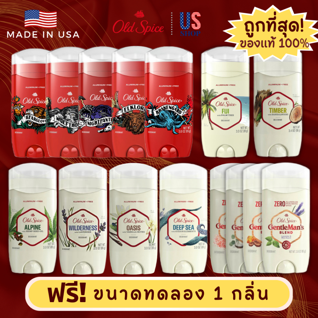 [ฟรี! ตัวทดลอง 1กลิ่น] ของแท้ 100%โรลออน OLD SPICE สูตร Deodorant (Made in USA)