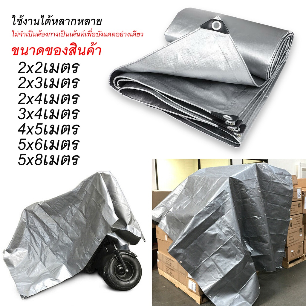 ผ้าใบกันแดดกันฝน อย่างดี วัสดุPE (มีตาไก่) คลุมรถ อเนกประสงค์ ขนาด 2*2 2*3 3*3 3*5 เมตร