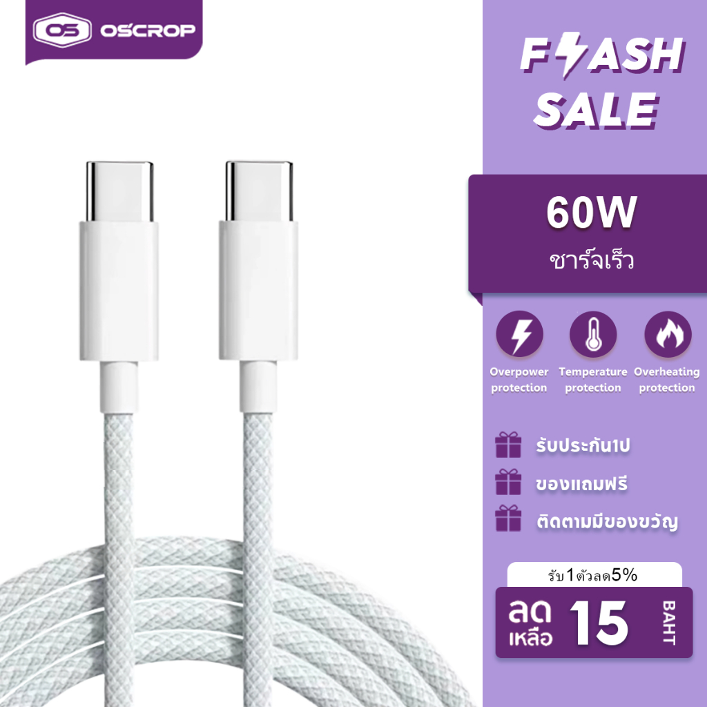 สายชาร์จ USB-C เป็น type C 60W สําหรับ iPhone 15 Pro Max Android a-pple I-pad