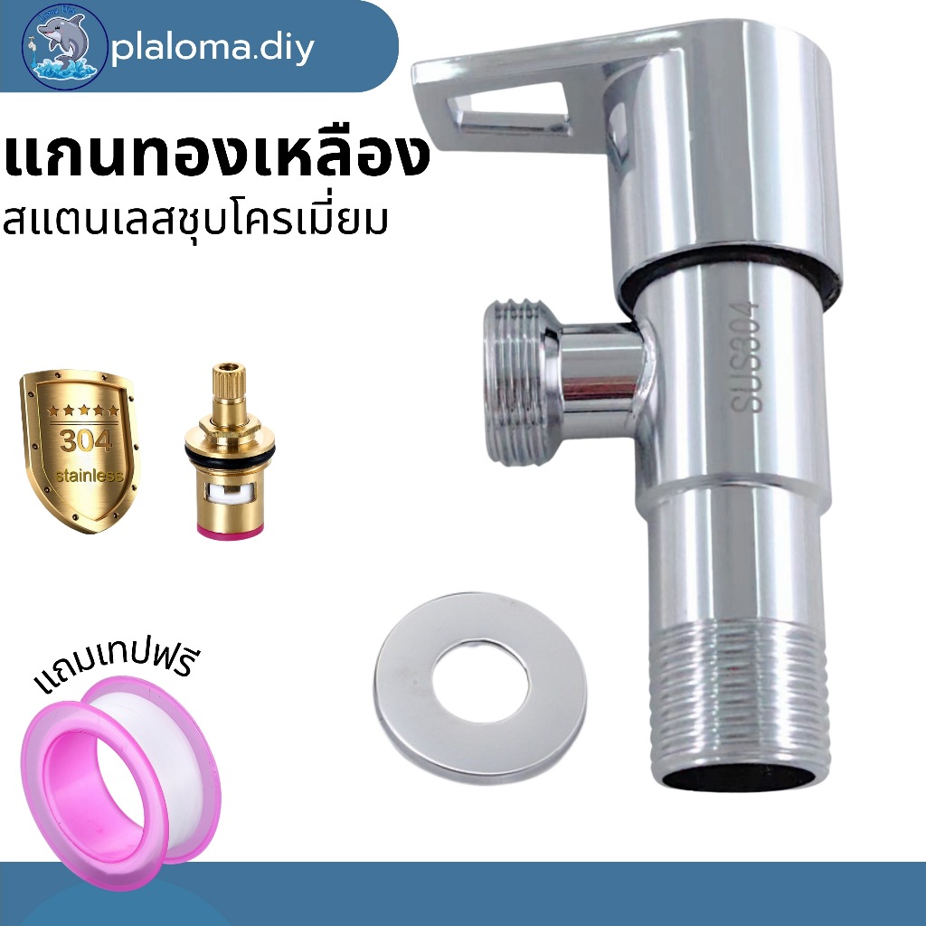 วาล์วฝักบัวอาบน้ำ ด้ามแบน ก็อกเปิด-ปิดฝักบัวอาบน้ำ สแตนเลส ชุบโครเมี่ยม (แถมเทปฟรี)