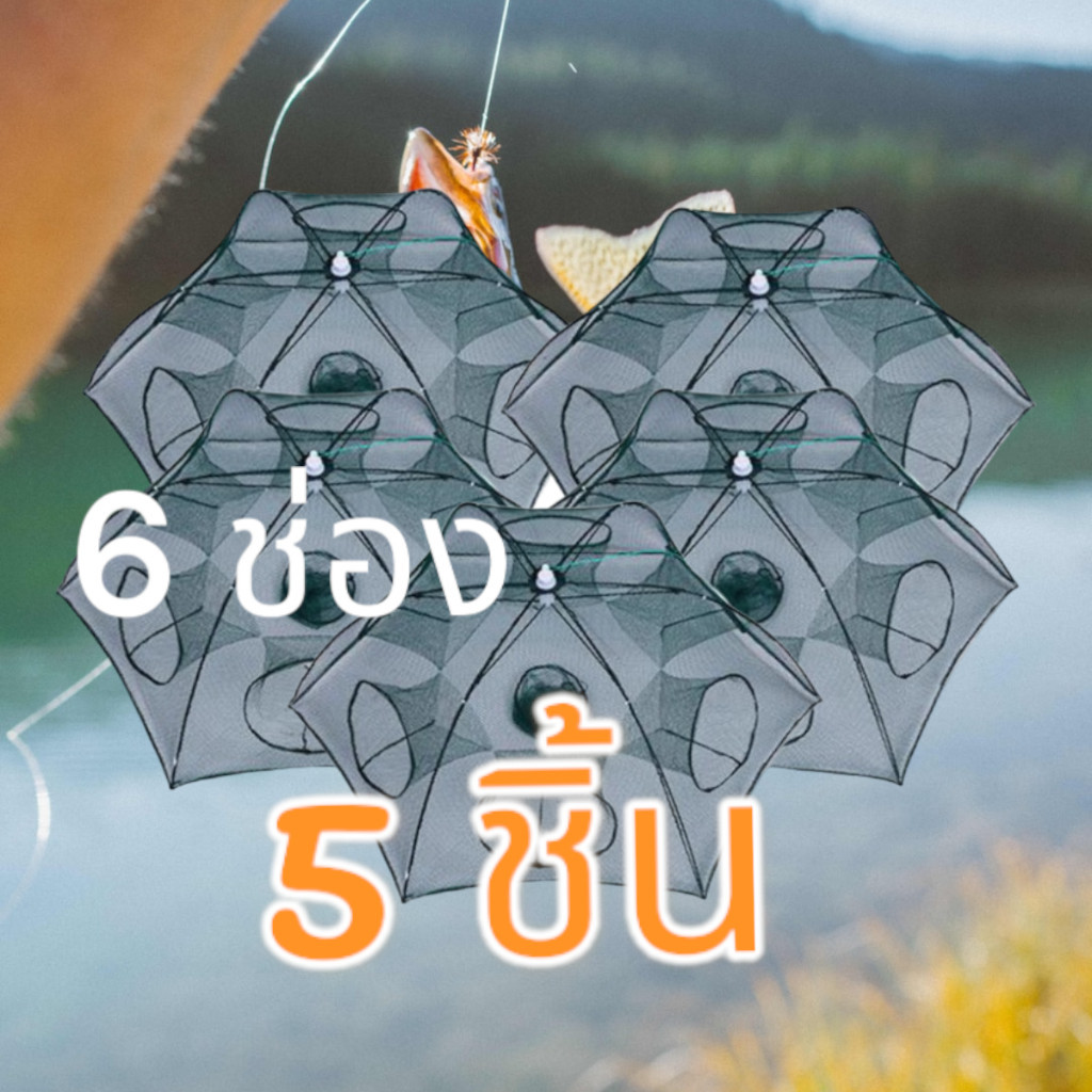 มุ้งตาข่ายดักปลา ที่จับกุ้งฝอย ดักสัตว์ 6 ช่อง 5ชิ้น (แถมอาหารปลา1ถุงต่อ1ออเดอร์)