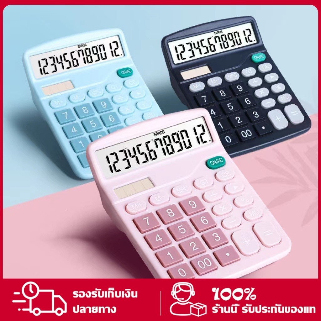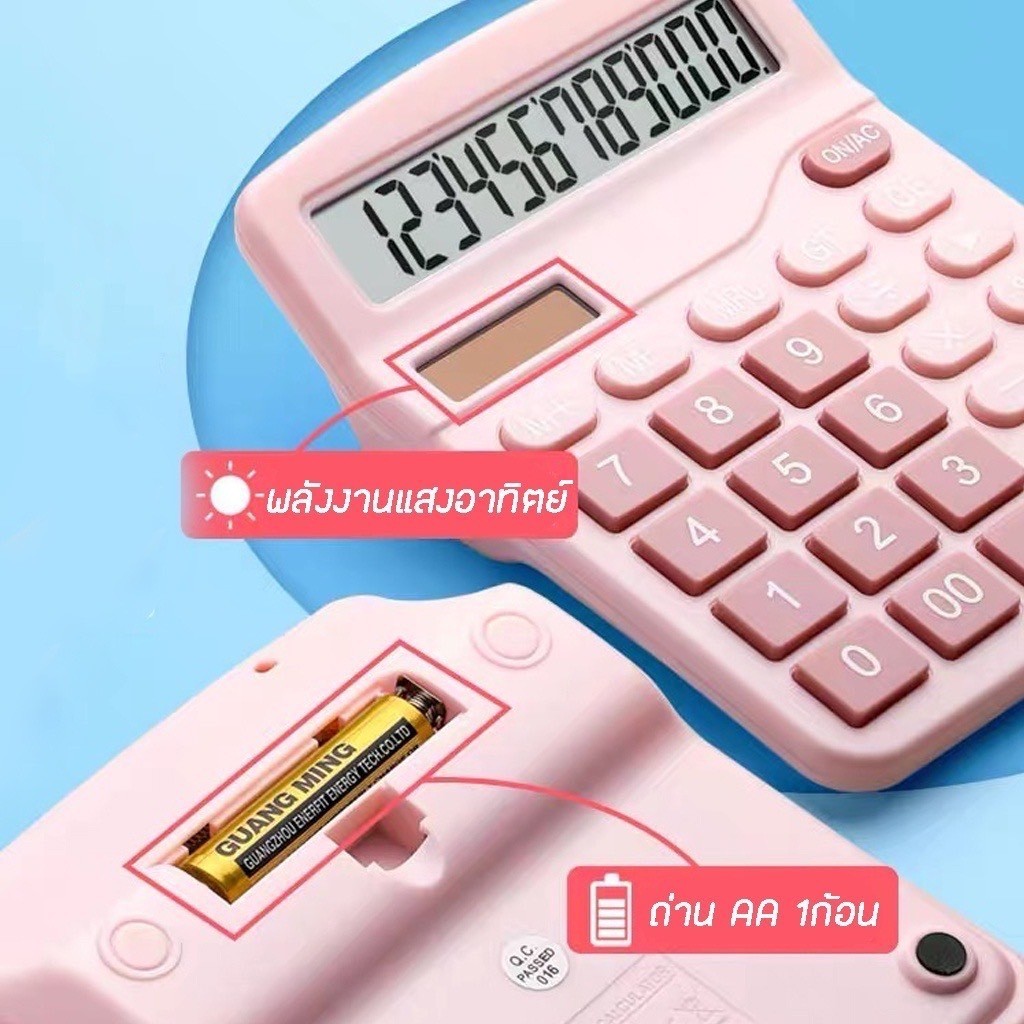 รายละเอียดสินค้า -เครื่องคิดเลข 12 หลัก 12 Digits Calculator -ระบบ 2in1 สามารถใช้ถ่านหรือใช้แสงก็ได้ -จอใหญ่ ปุ่มกดใหญ่ ใช้งานง่าย -ใช้ถ่านขนาด AA แค่ 1 ก้อน -มีกันลื่น เวลาใช้งานไม่เลื่อนไปมา -ดีไซน์สวย สีพาสเทลน่ารัก -ขนาด 12x15 เซนติเมตร -มีให้เลือก 2 สี ฟ้า/ชมพู