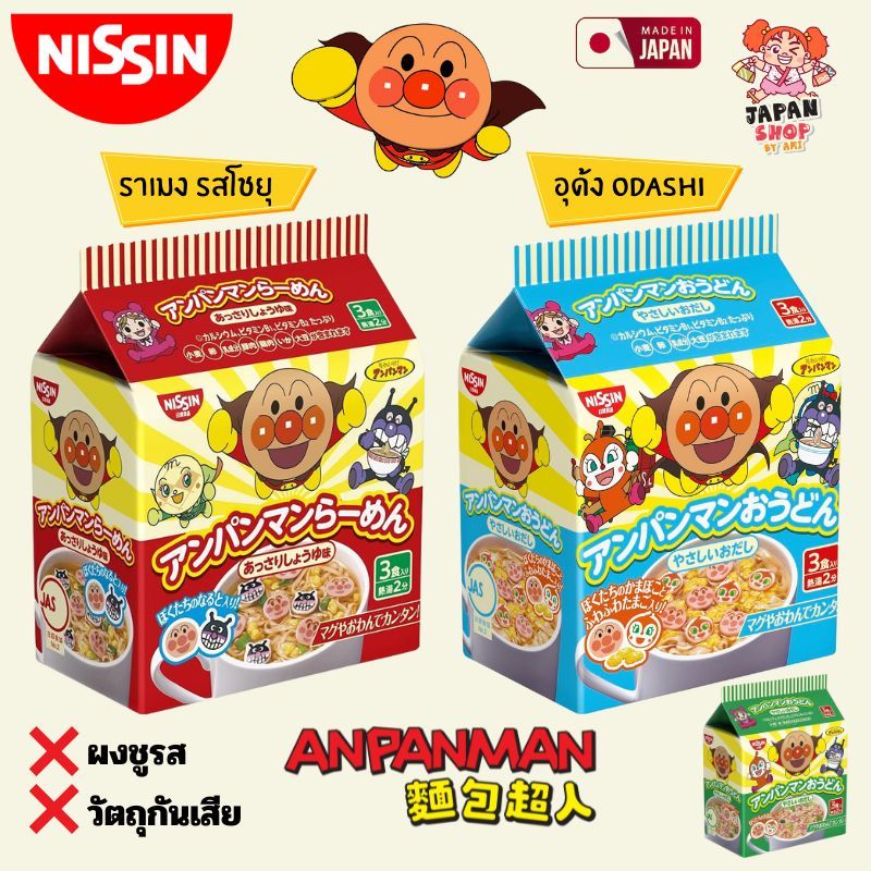 Nissin Anpanman Ramen / Udon มาม่าอันปังแมน / อุด้ง จากญี่ปุ่น 1 ห่อ มี 3 ซอง พร้อมส่ง