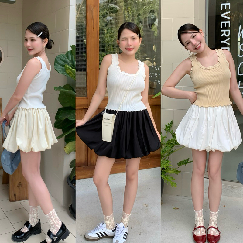 𝐁𝐀𝐋𝐋𝐎𝐎𝐍 𝐒𝐊𝐈𝐑𝐓 🍧🍿🥟 กระโปรงมินิมอล กระโปรงทรงบอลลูน มีซับในกางเกง (โรงงานผ้าที่ไทยร้านผลิตเอง)