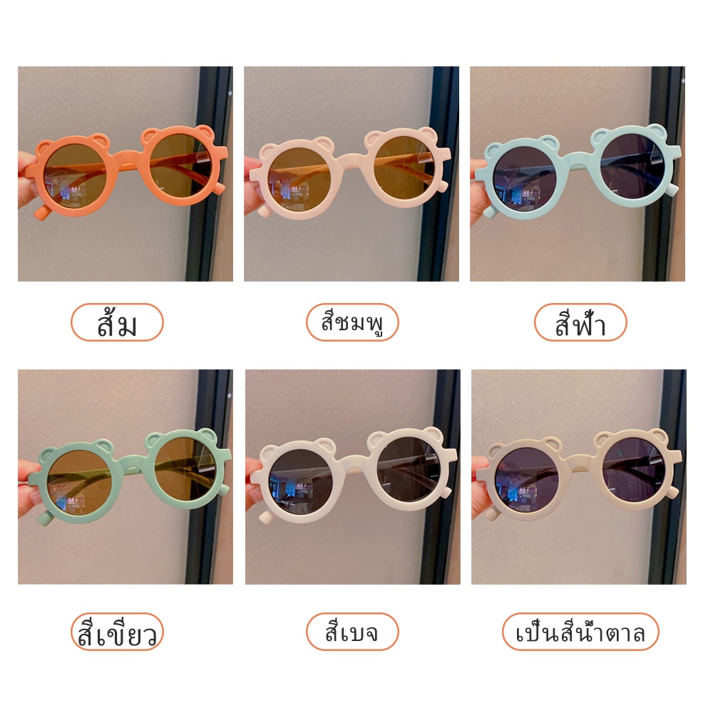 ... นการสั่งซื้อทันทีโปรดนำรูปภาพหรือวิดีโอที่เกี่ยวข้องมาติดต่อฝ่ายบริการลูกค้าร้านค้า เพื่อให้เราสามารถให้บริการที่น่าพอใจหลังจากบริการขายได้ดีขึ้น 🔶สี: สีส้ม สีน้ำตาล สีชมพู สีเบจ สีเขียว สีฟ้า 🔶วัสดุ: พีซี 🔶อายุที่เหมาะสม: อายุ 5-12 ปี 🔶น้ำหนักผลิตภัณฑ์: 0.02kg 🔶คุณสมบัติ: ➦รูปร่างหมีน่ารักการถ่ายภาพนั้นดูดี แต่ยังปิดกั้นดวงอาทิตย์เพื่อป้องกันรังสีอัลตราไวโอเลต
