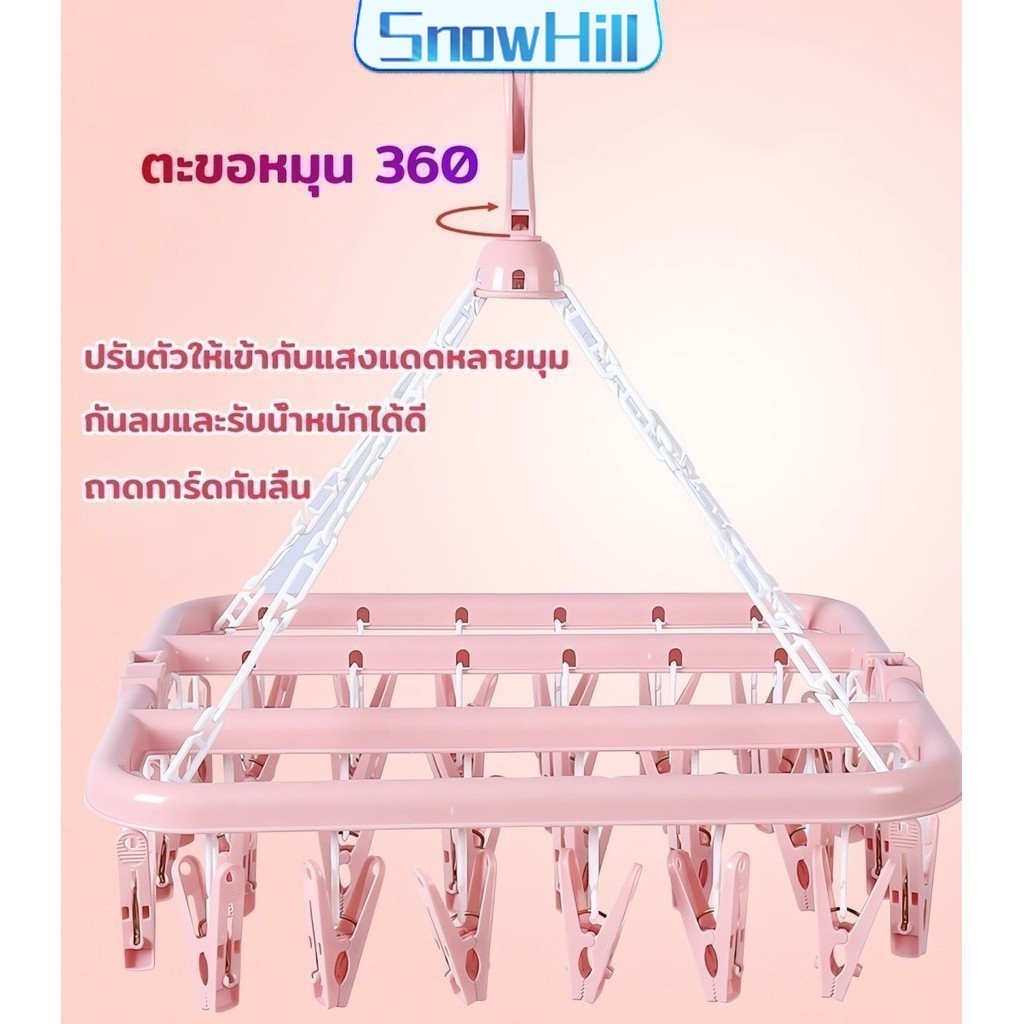 ตากผ้าเหลี่ยม พับได้ ที่แขวนห่วงหนีบผ้าพลาสติก แขวนได้ทั้งผ้าเปียก ตากชุดชั้นใน ถุงเท้า Socks Hanger with 12/32 clips