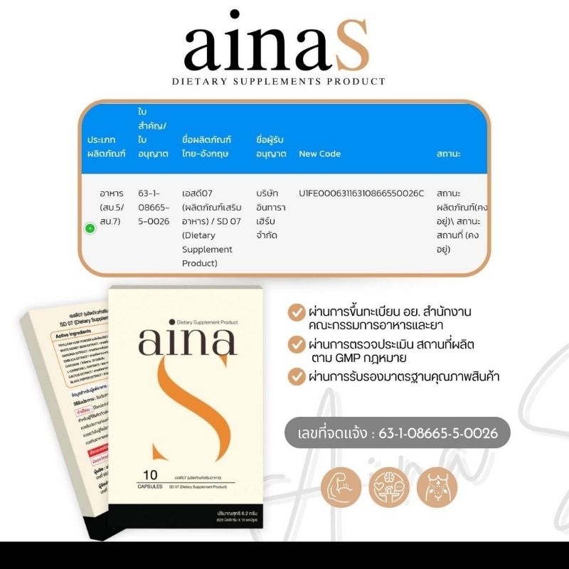 [ลด50%ในไลฟ์📌]อัยน่าเอส aina s(10แคปซูล)ของแท้💯% รับตรงกับบริษัท